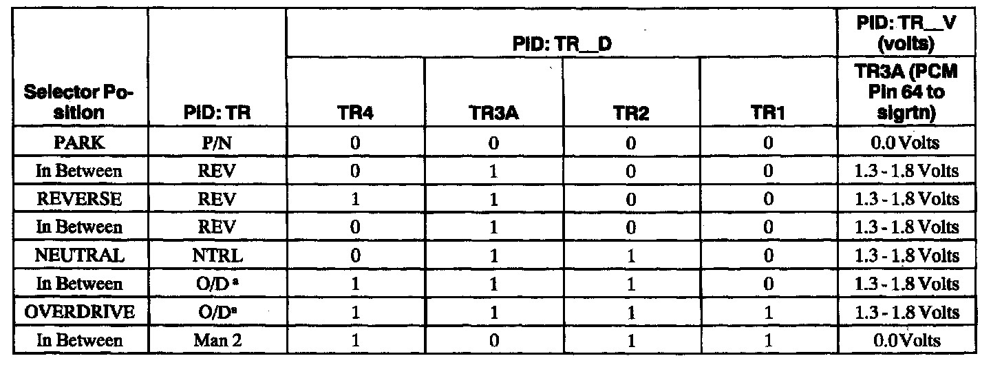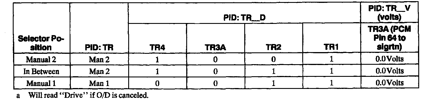 Digital Transmission Range (TR) Sensor Diagnosis Chart
