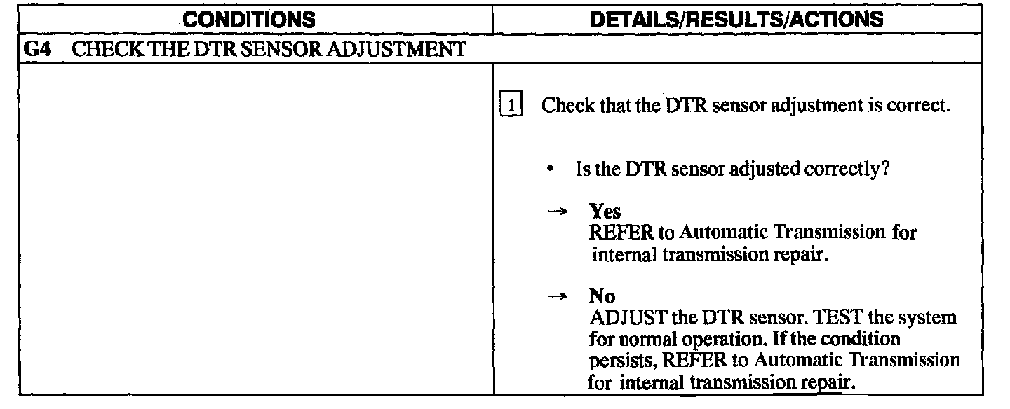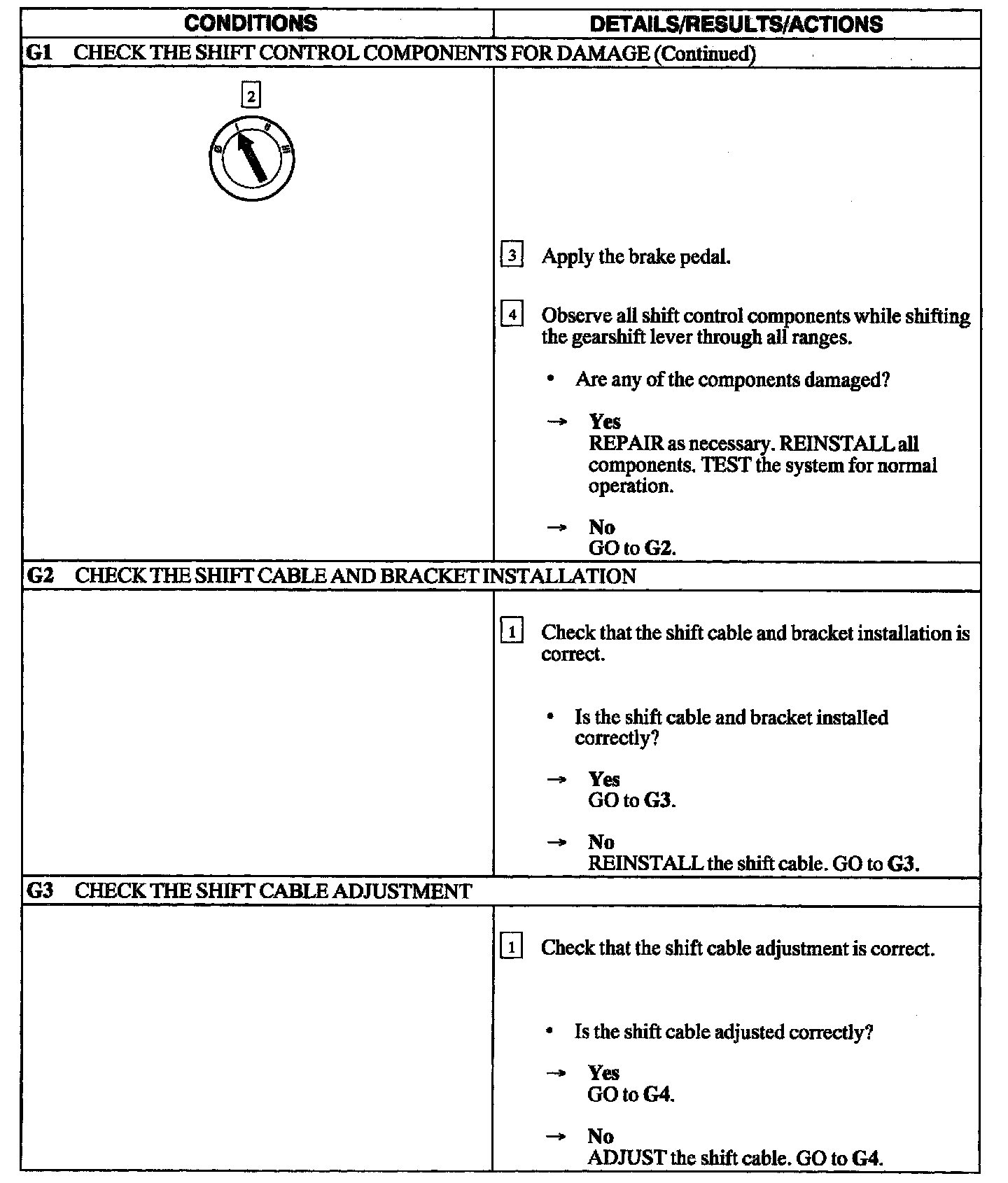PINPOINT TEST G: THE SHIFT CONTROL IS OUT OF CORRECT GEAR RELATIONSHIP FLOOR SHIFT