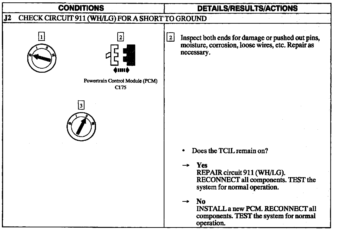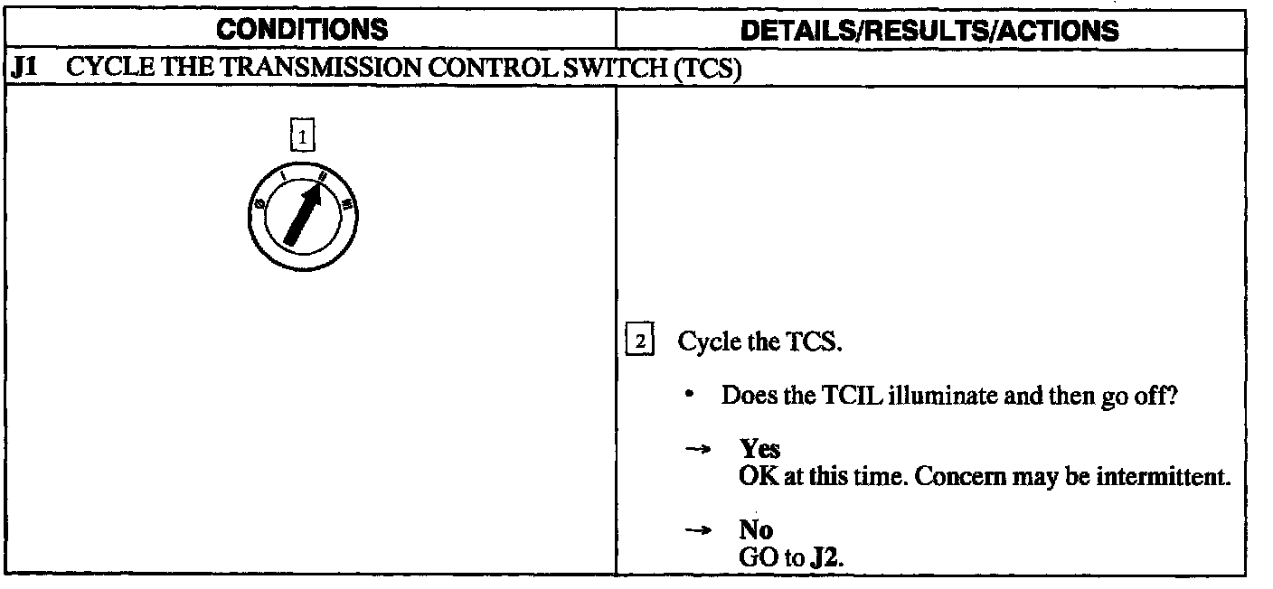 PINPOINT TEST J: THE TRANSMISSION CONTROL INDICATOR LAMP (TCIL) IS ILLUMINATED CONTINUOUSLY - FLOOR SHIFT