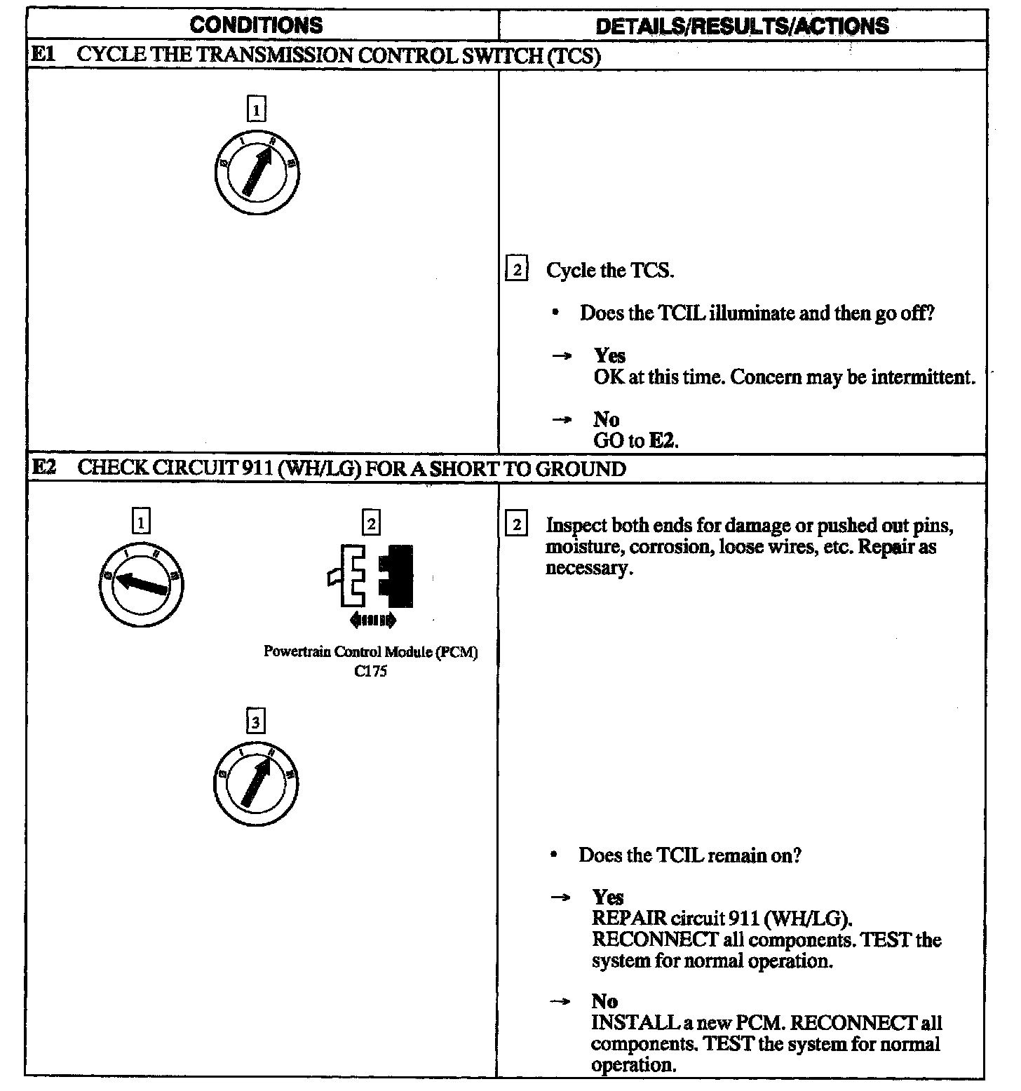 PINPOINT TEST E: THE TRANSMISSION CONTROL INDICATOR LAMP (TCIL) IS ILLUMINATED CONTINUOUSLY
