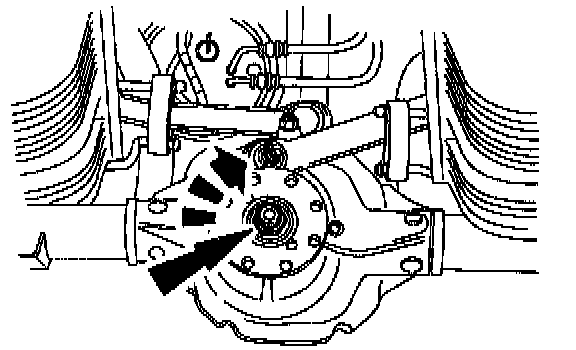 9. CAUTION: The driveshaft centering socket yoke fits tightly on the rear axle pinion flange pilot. To ensure that the yoke seats squarely on the flange, tighten bolts evenly in a cross pattern as shown.