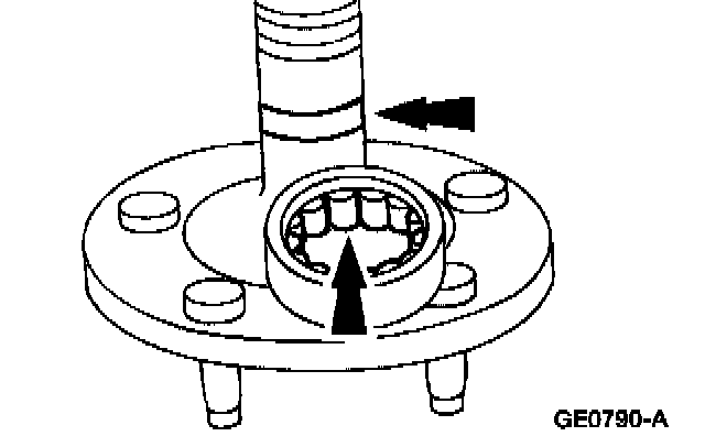 If the wheel bearing is damaged, the roller surface on the axle shaft may also be damaged. Install a new axle shaft if any damage is detected.