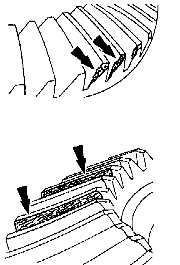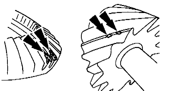Clean the gear tooth nick or ridge with a small grinding wheel. If the damaged area is larger than 3.2 mm (1/8 inch), install a new gearset.