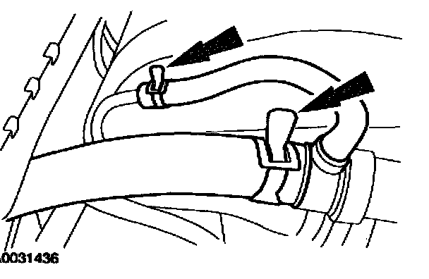 7. Disconnect the upper radiator hose and engine vent hose.