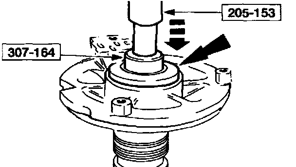 1. If removed, install a new driven sprocket bearing. Using the special tools and an arbor press install a new driven sprocket bearing.