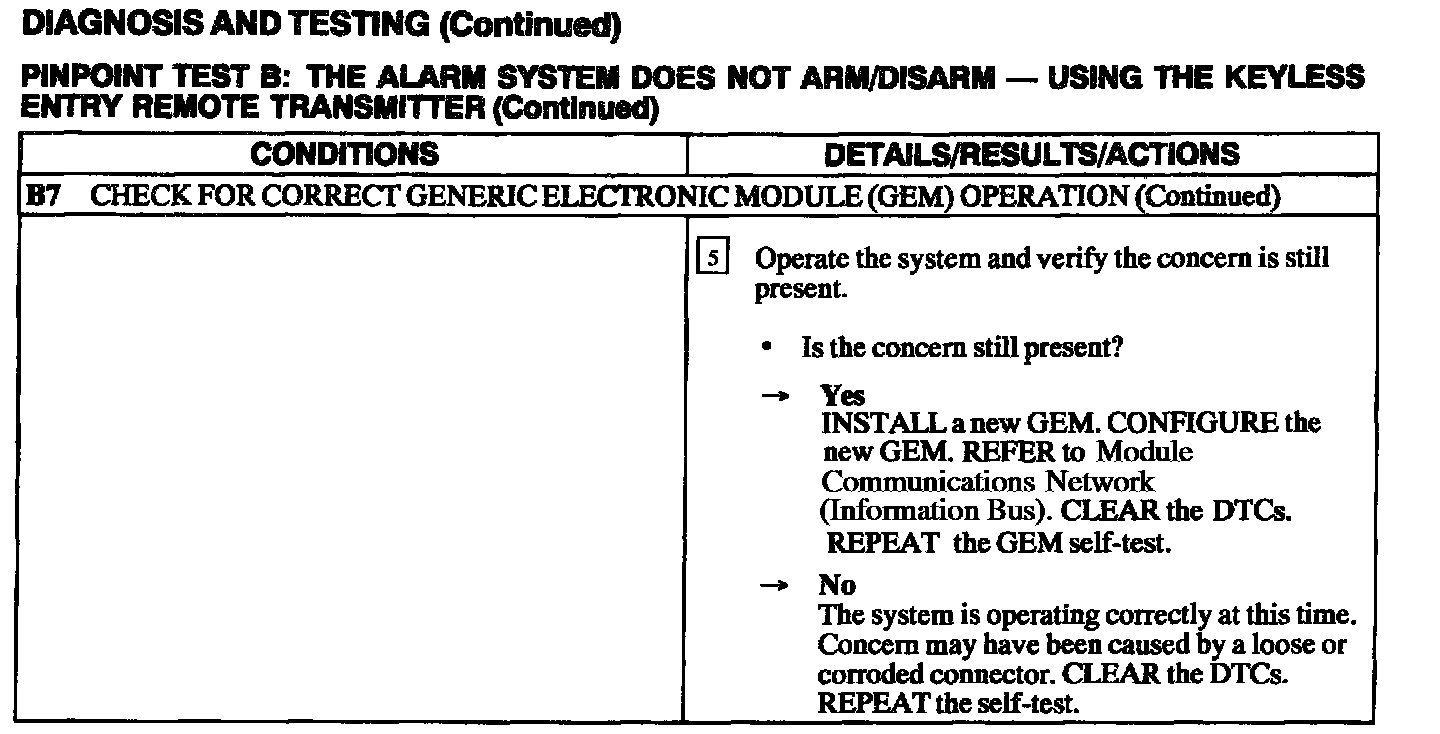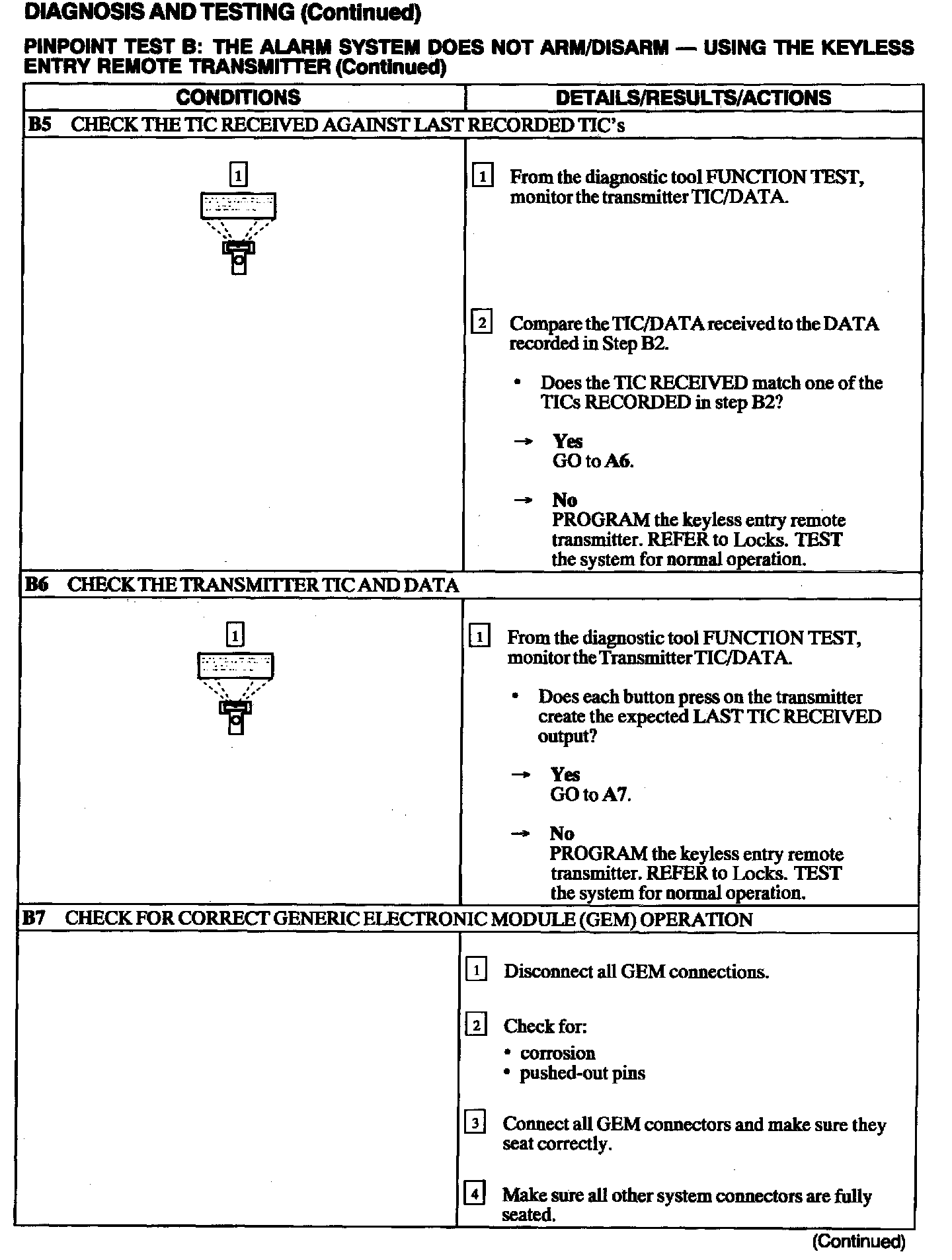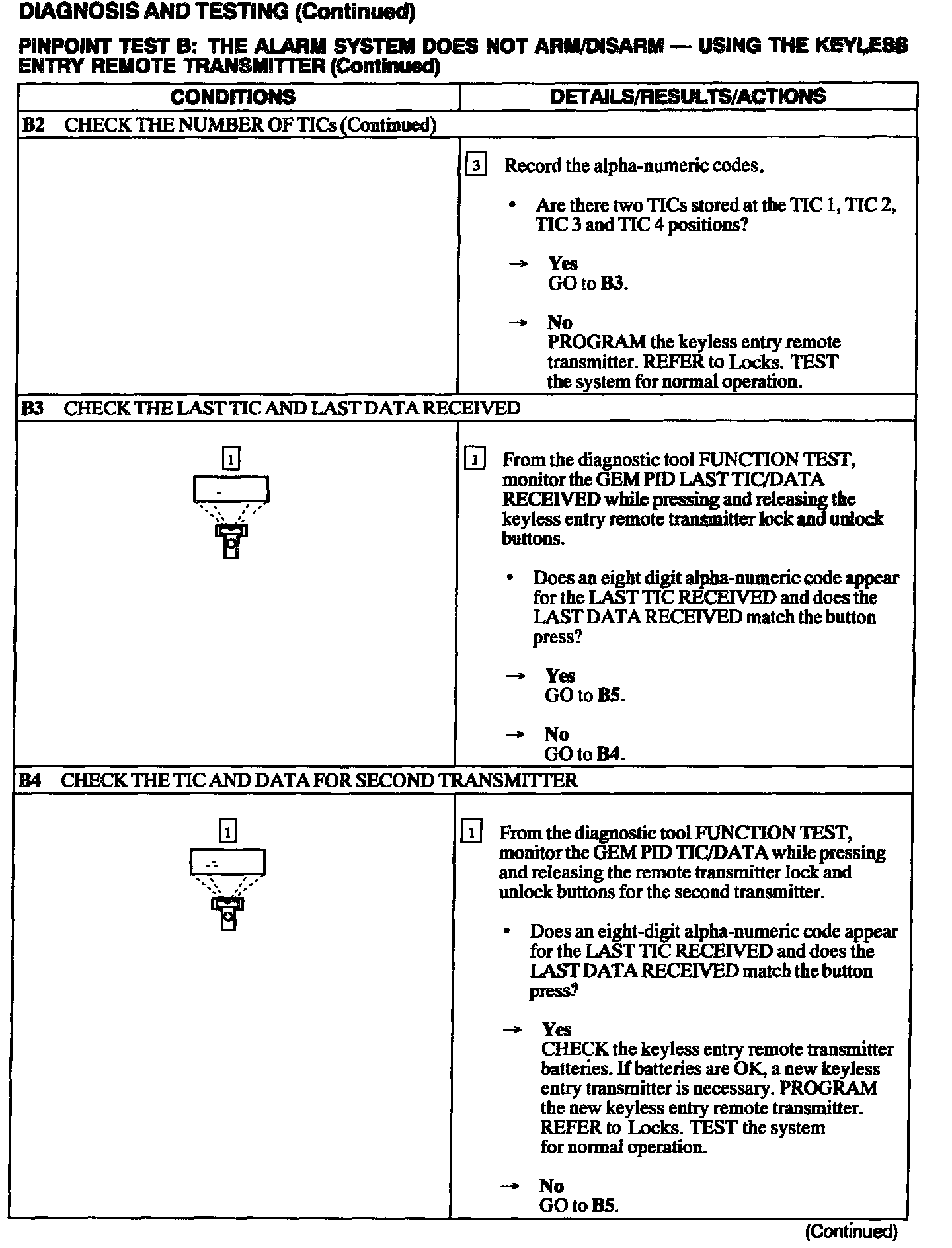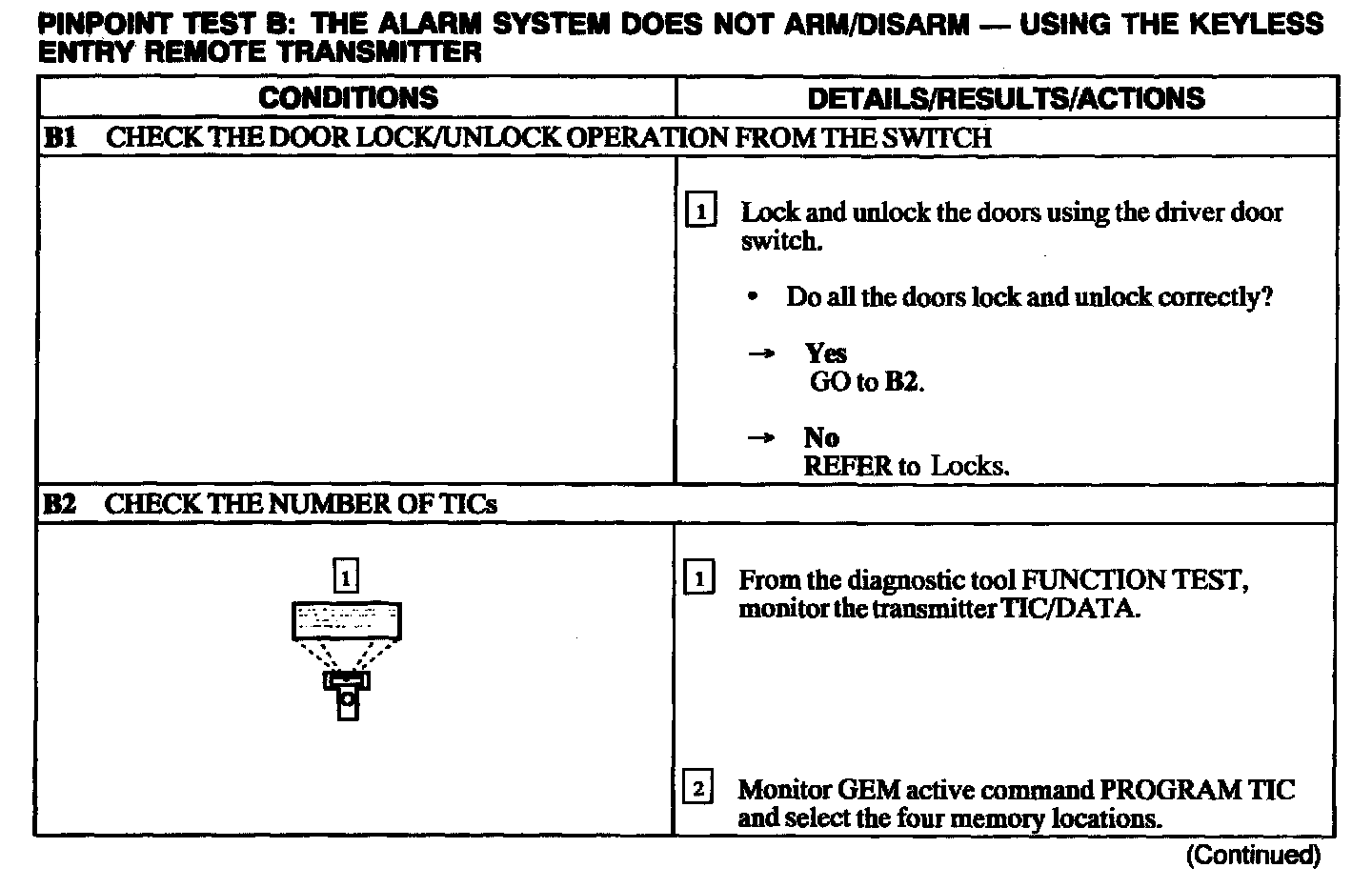 B: Alarm System Does Not Arm/Disarm - Using The Keyless Entry Remote Transmitter