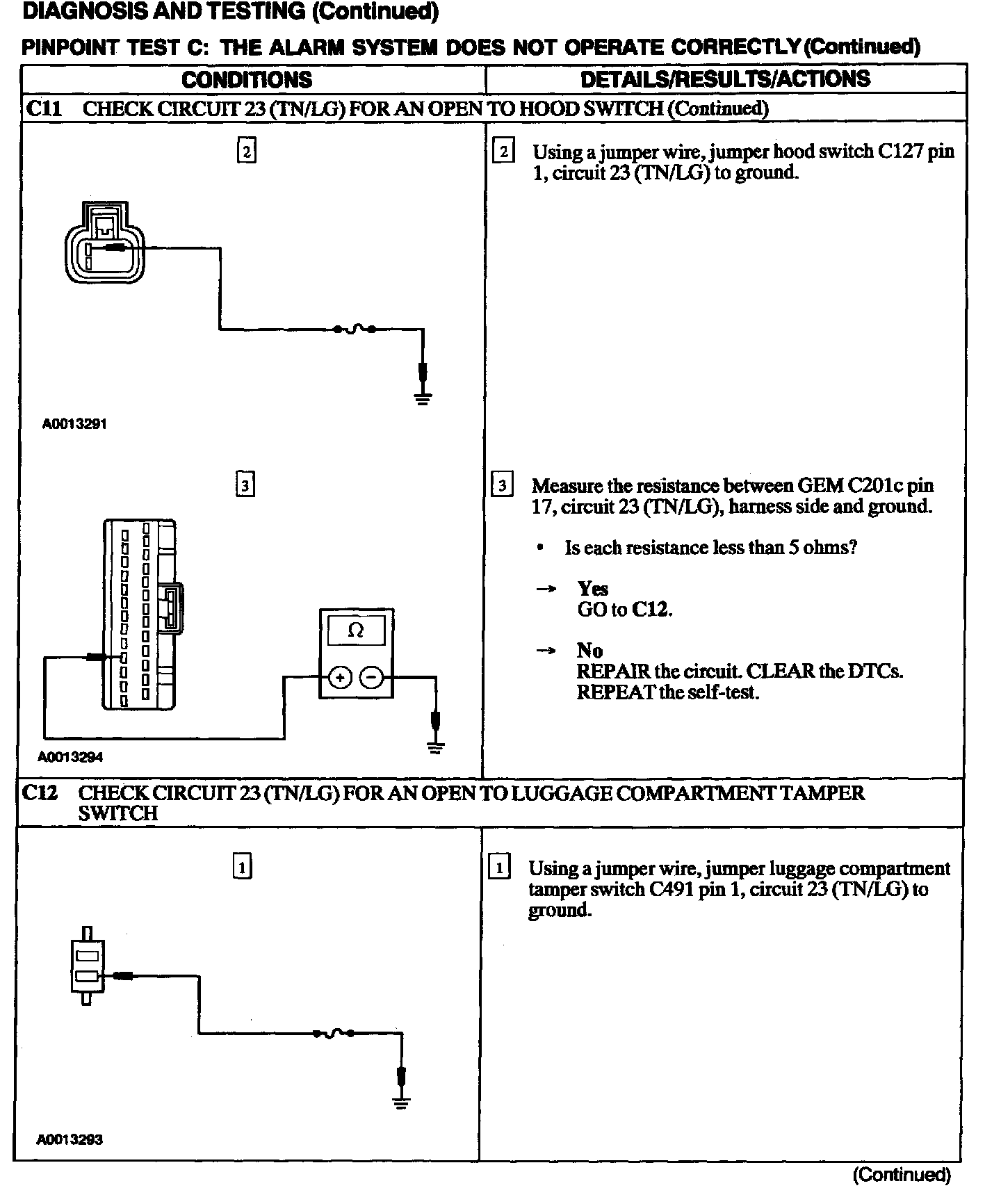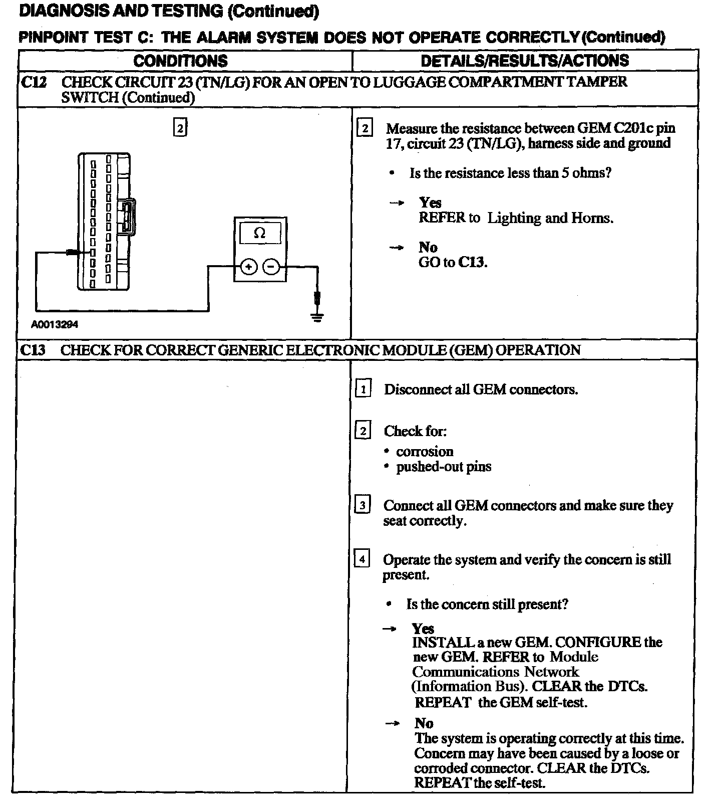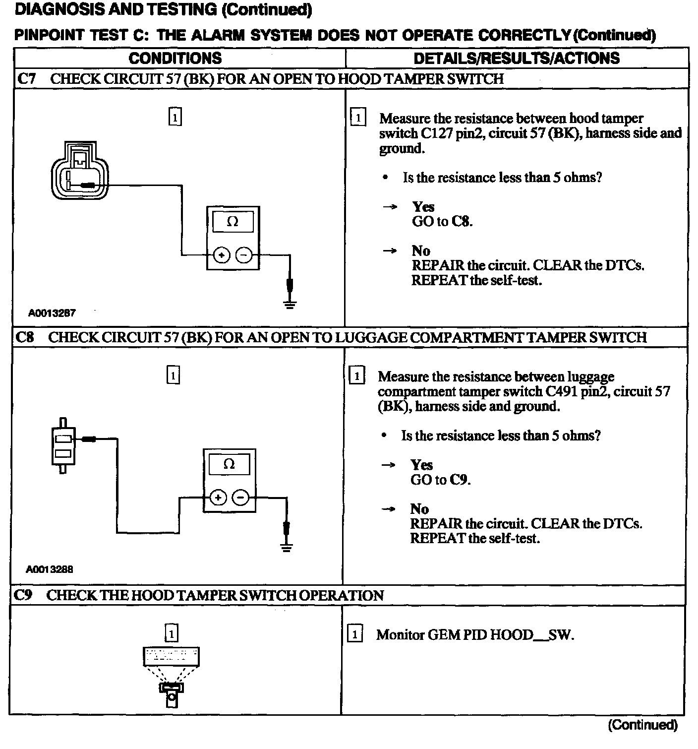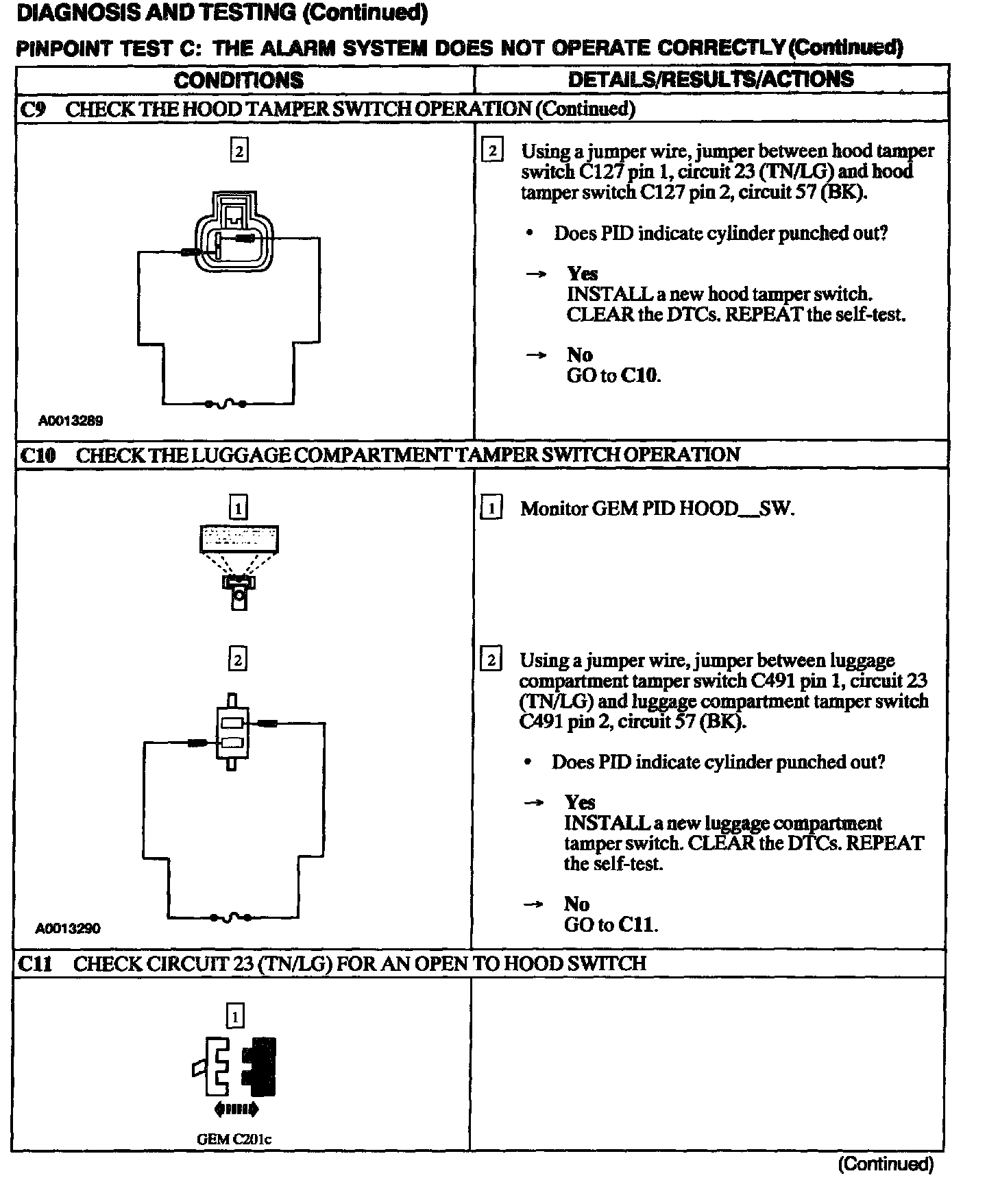 Test C: Alarm System Does Not Operate Correctly