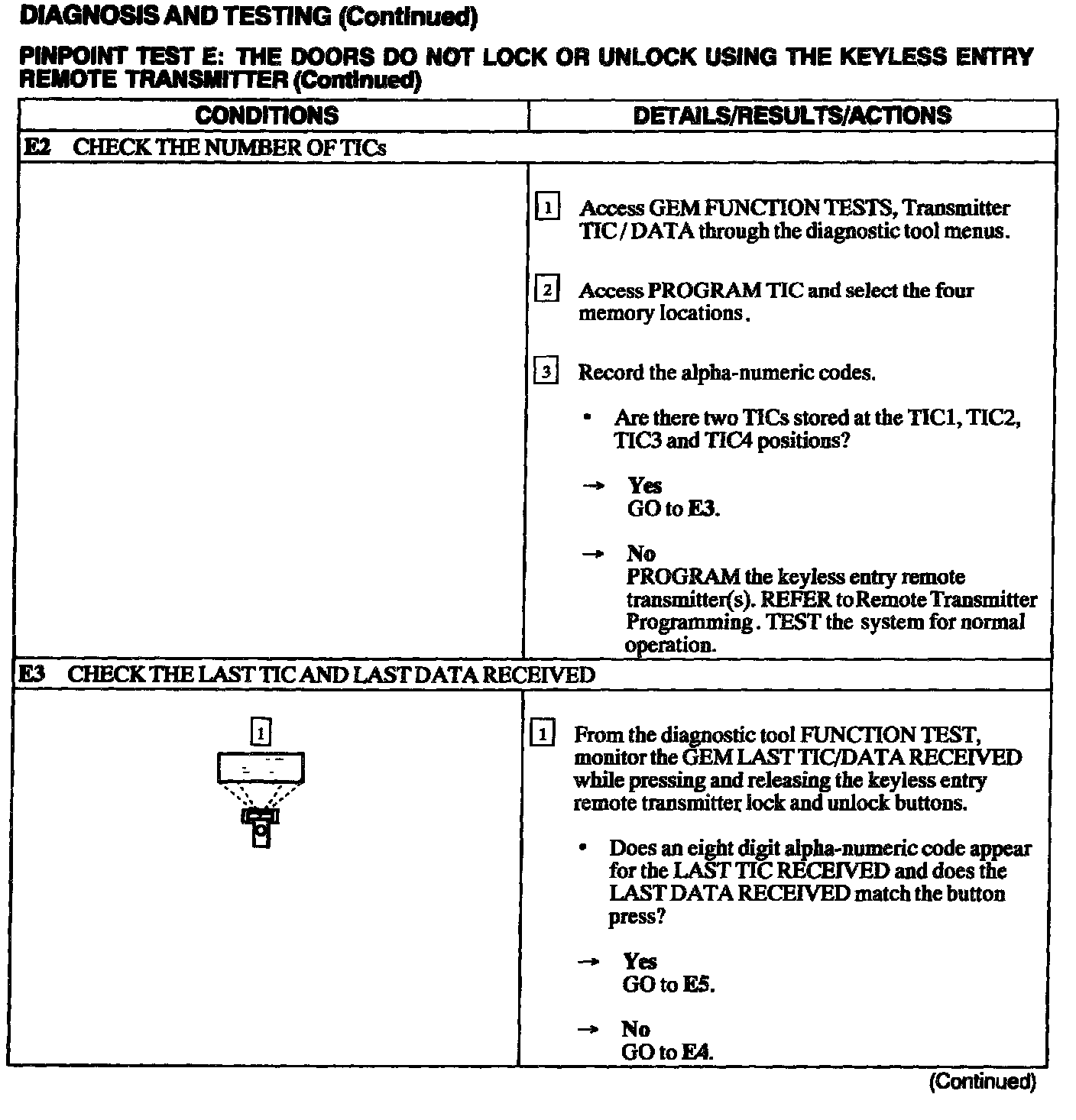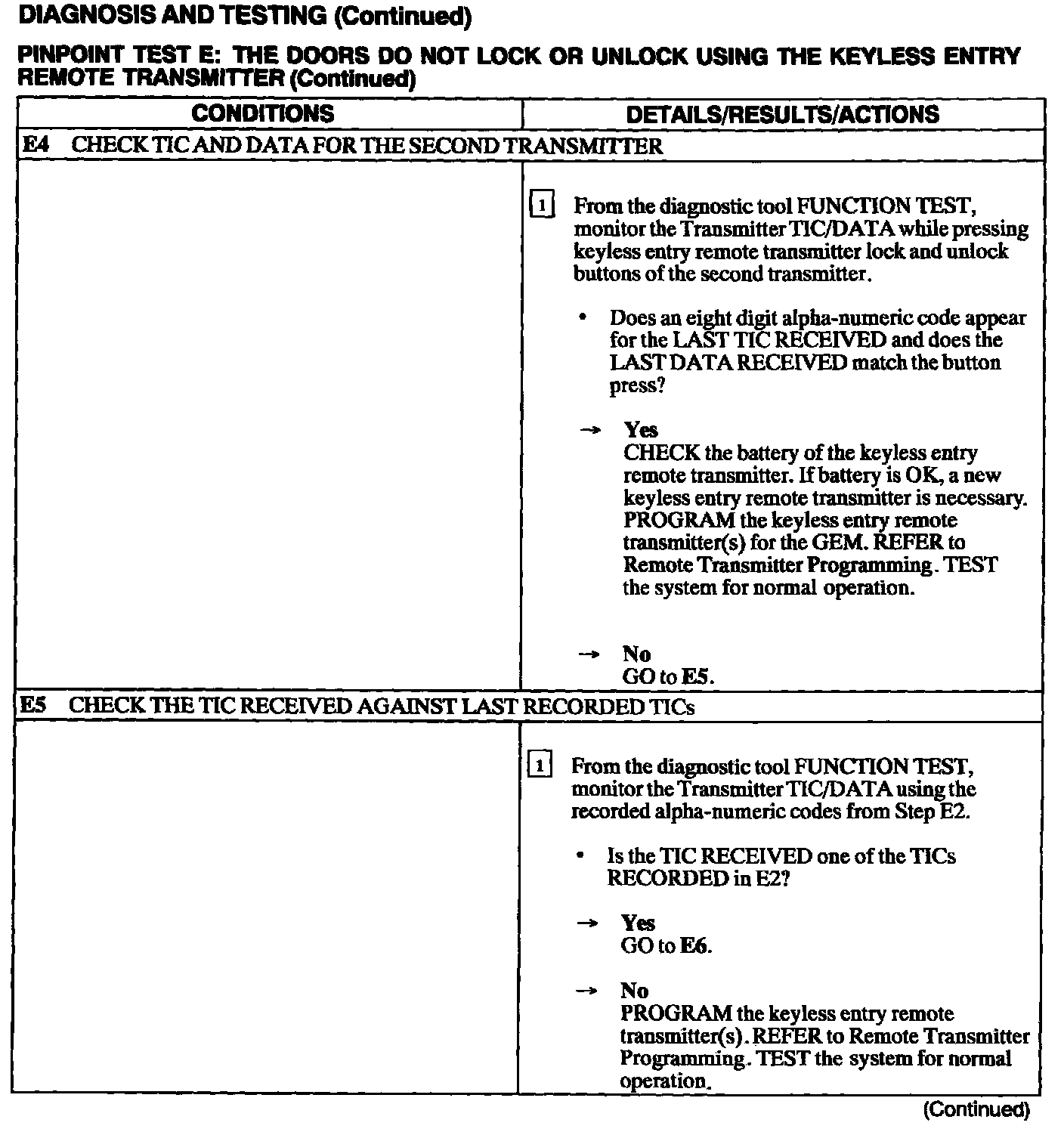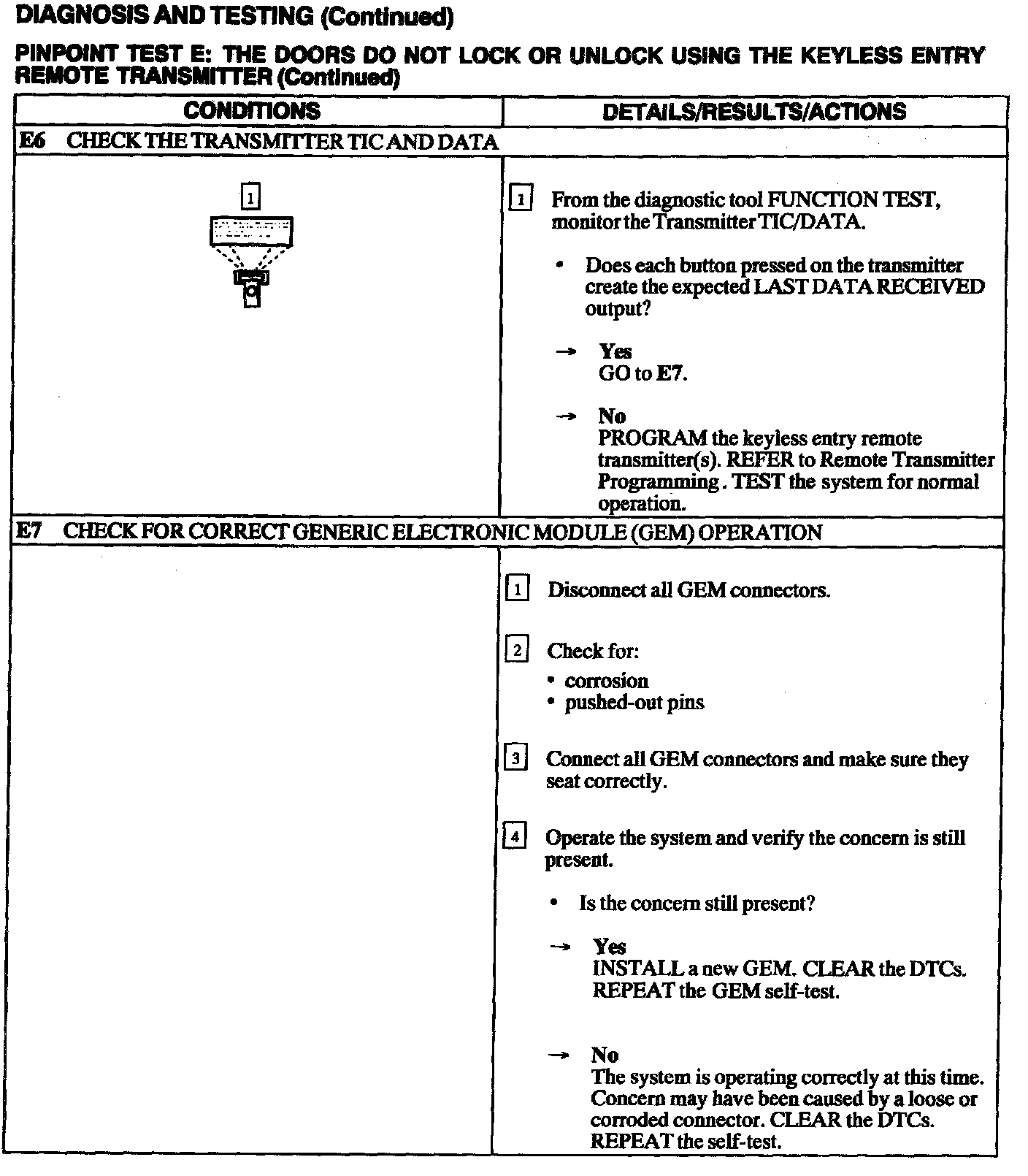 Test E: Doors Do Not Lock Or Unlock Using The Keyless Entry Remote Transmitter