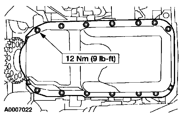 13. Retighten the oil pan bolts from the back to front to 12 Nm (9 ft. lbs.).