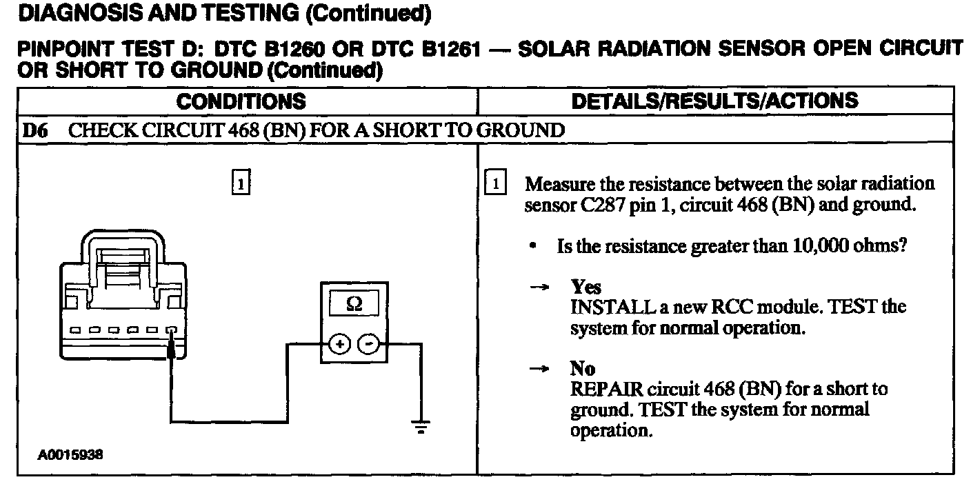 Test D: DTC B1260 Or B1261 - Solar Radiation Sensor CKT