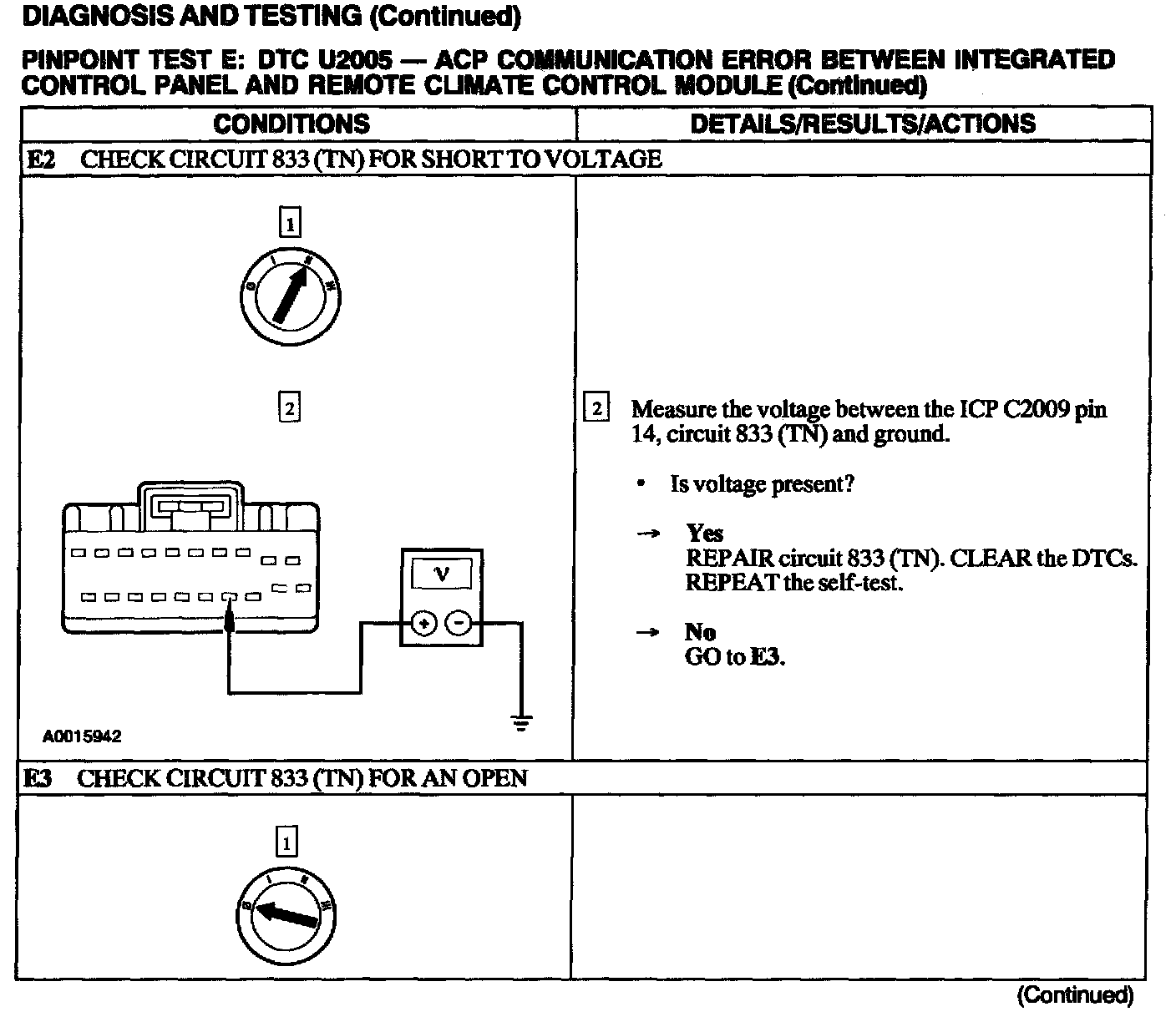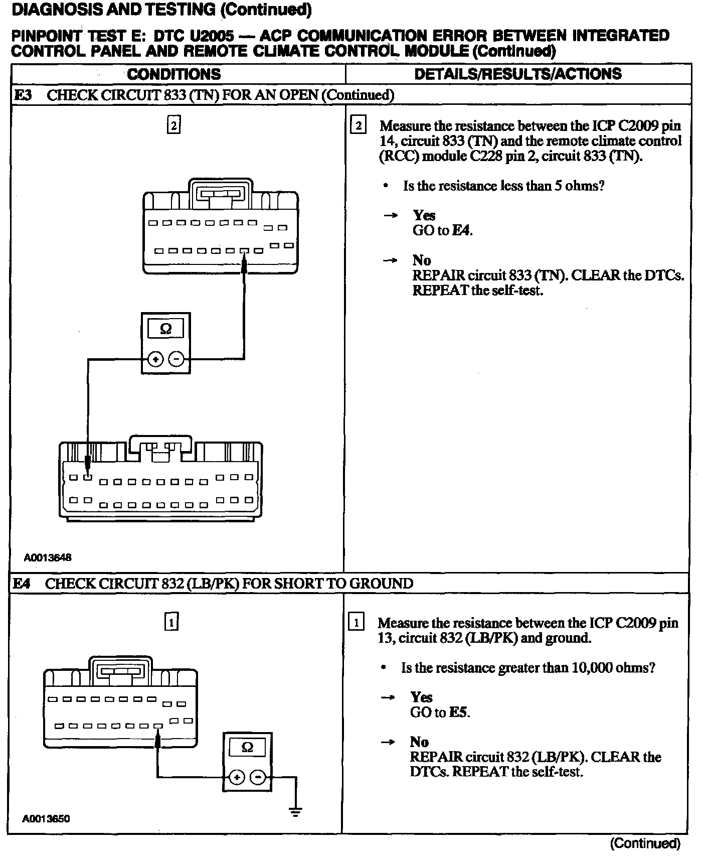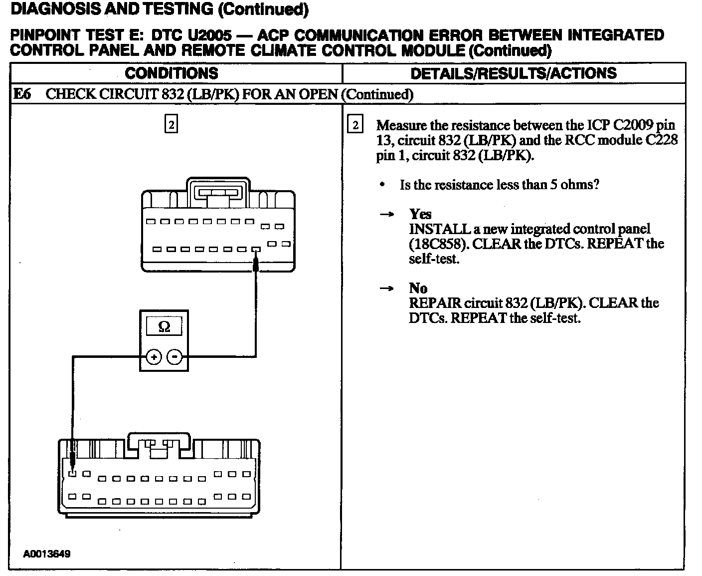 Test E: DTC U2005 - ACP Communication Error ICP & RCC Module