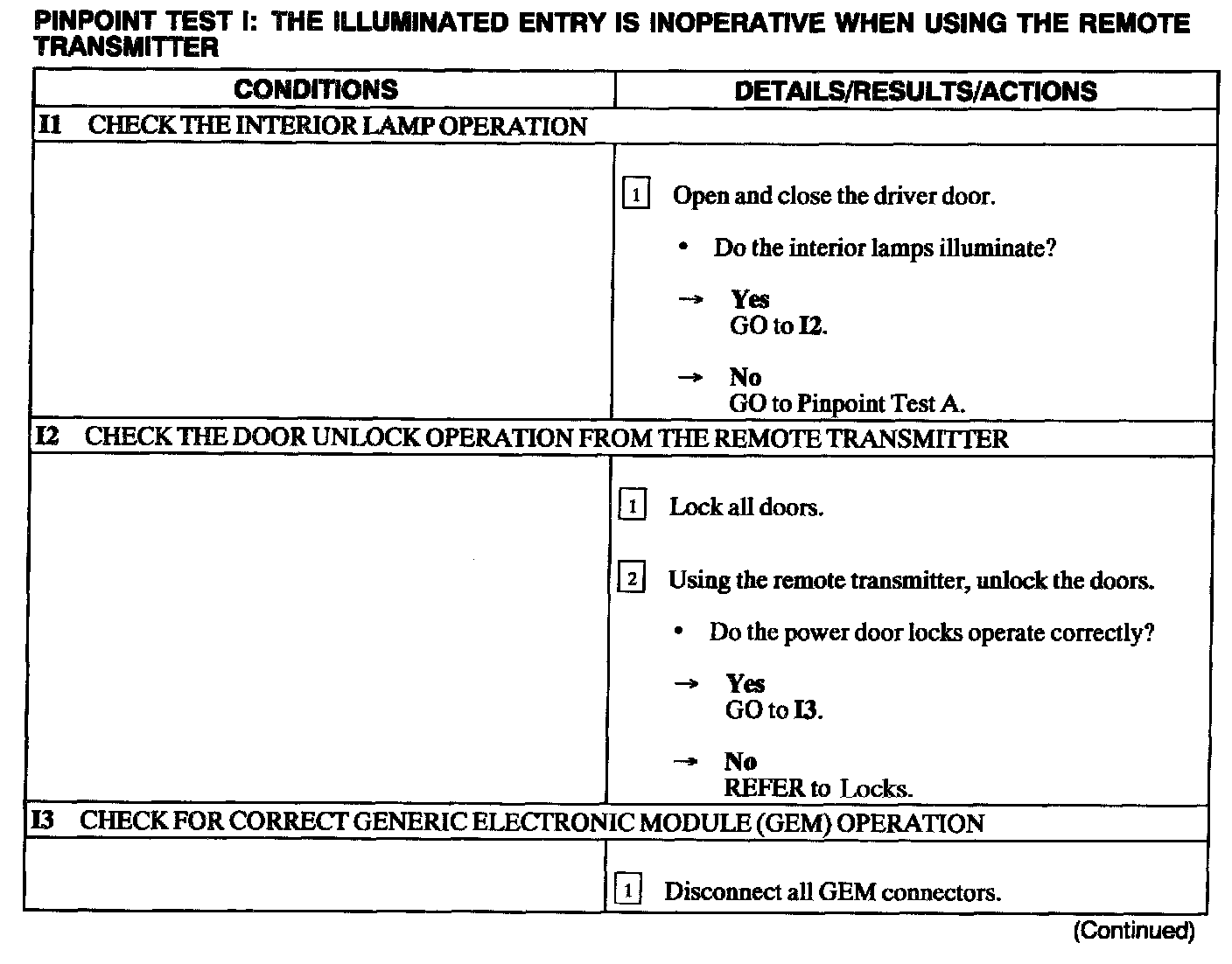 Test I: Illuminated Entry Is Inoperative When Using The Remote Transmitter