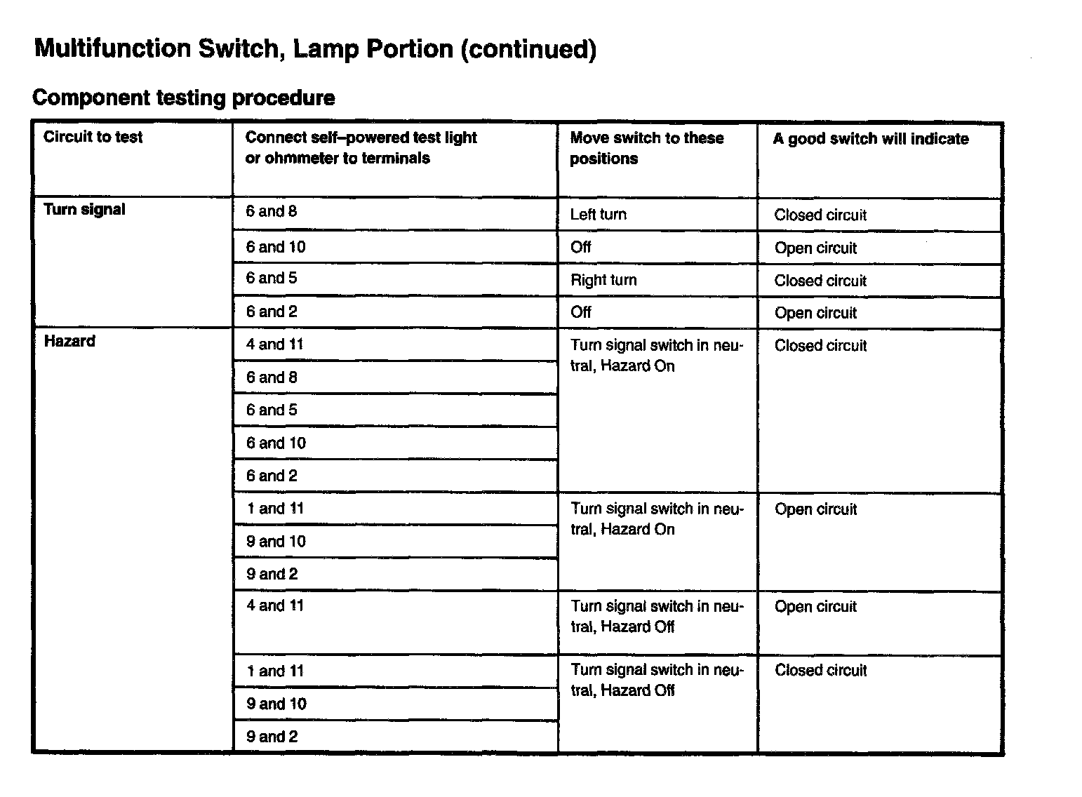 Turn Signal Switch: Testing and Inspection
