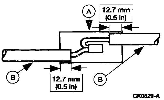5. Position the (A) heat shrink tube over the (B) wire repair.