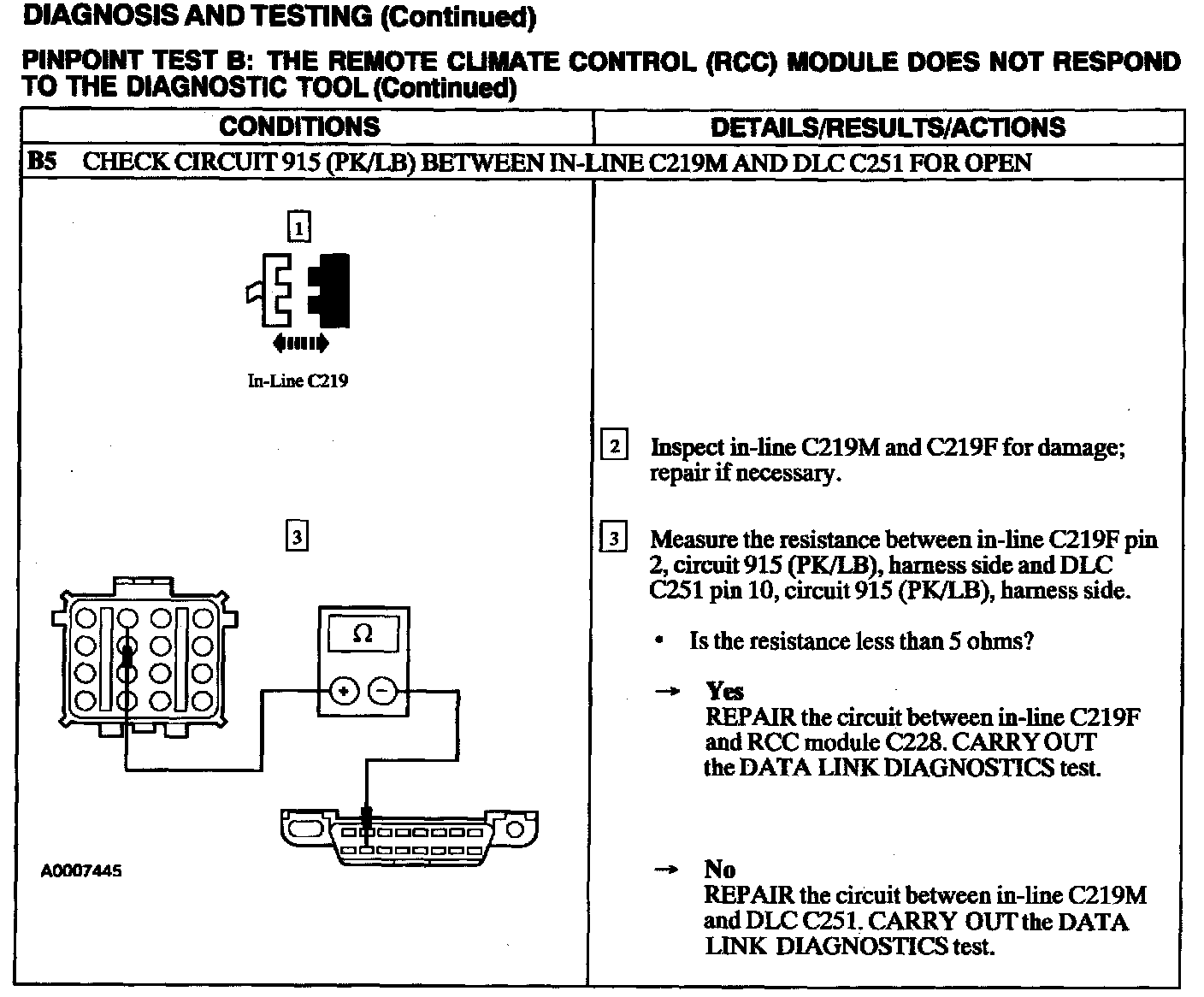 Test B: RCC Module Does Not Respond To The Diagnostic Tool