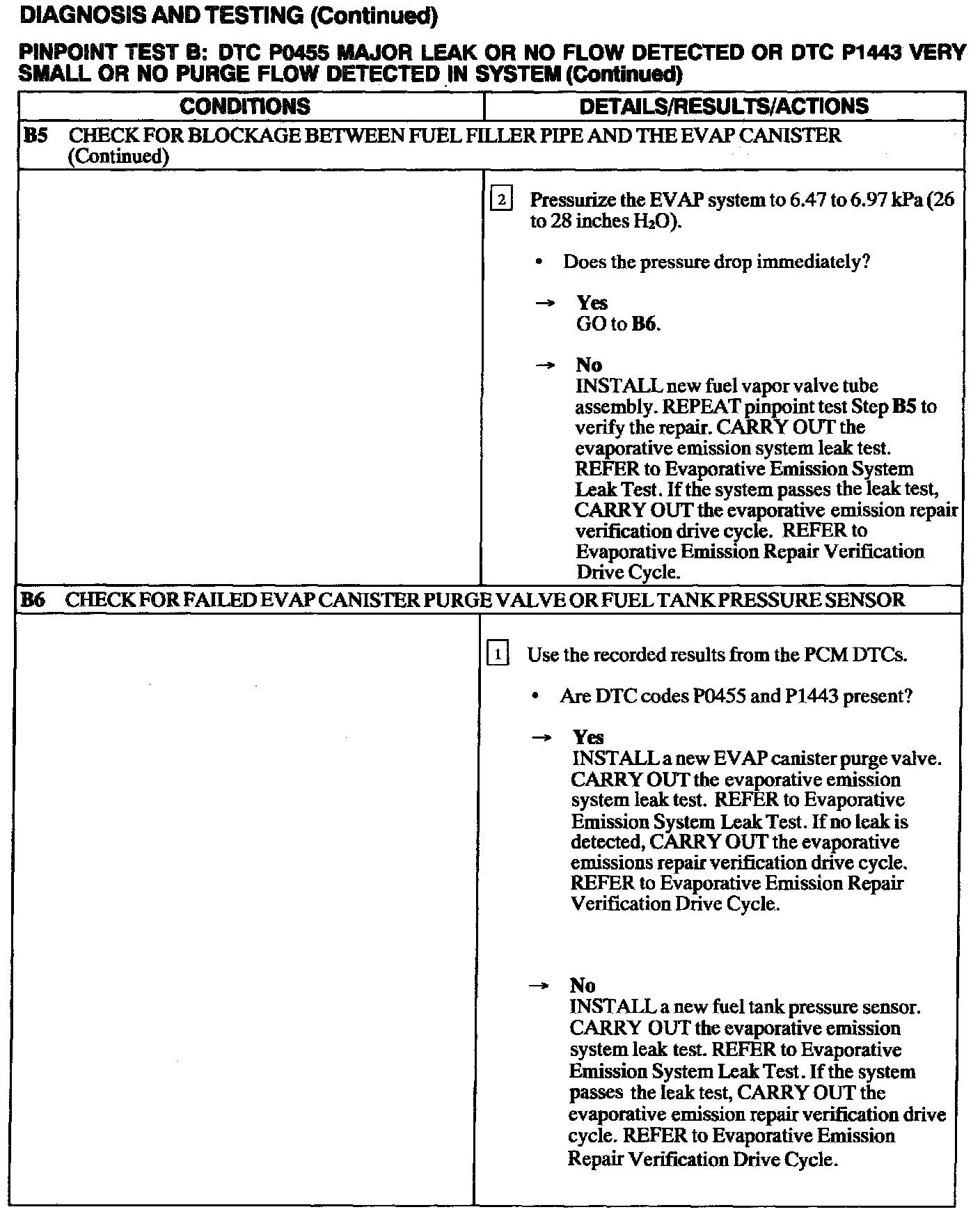 Test B: DTC P0455/P1443 No Flow Detected In System