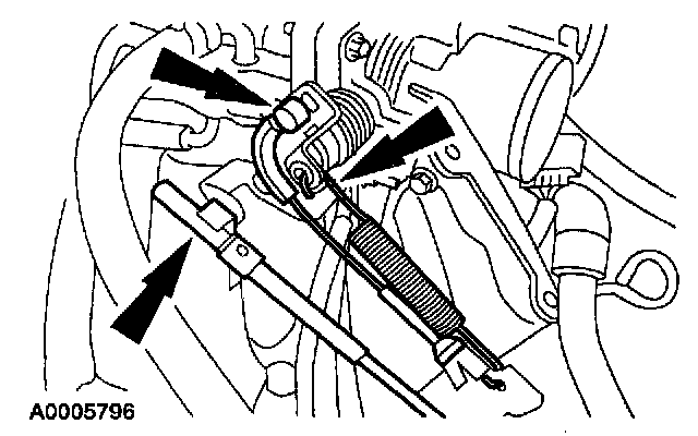 4. Disconnect the accelerator cable, speed control actuator cable and the throttle return spring from the throttle body.