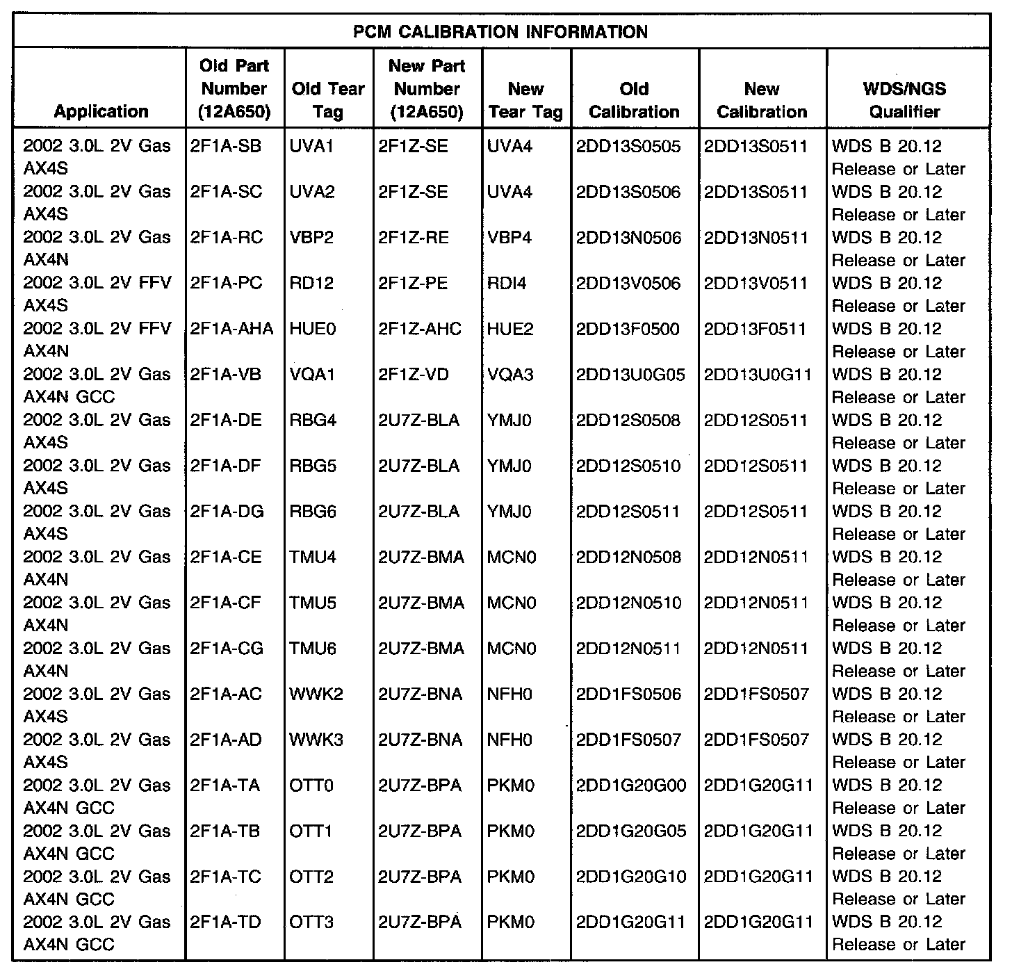 Verify the condition and symptoms as stated in the Issue and reprogram the PCM to the latest calibration level. Refer to the following PCM Calibration Information chart as shown for details.