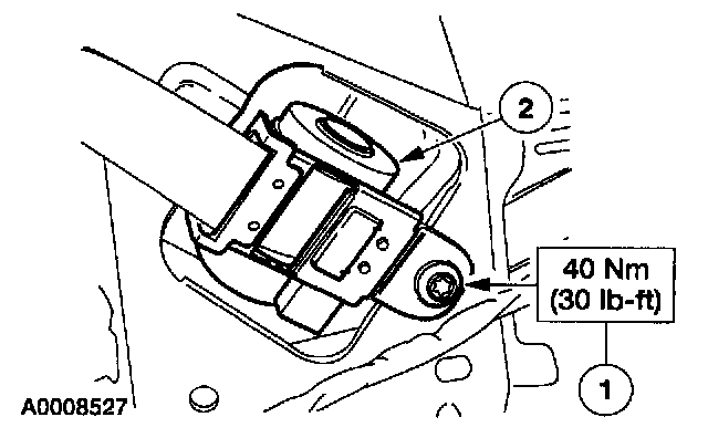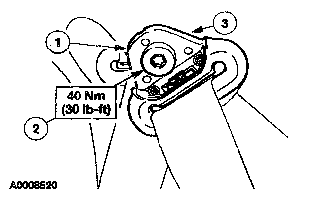NOTE: New safety belt buckles, height adjusters, center adjust tongues and belts and retractors can be installed separately. However, if a safety belt assembly was in use during a collision, a new belt and retractor must be installed as well as the center adjust tongue and belt and buckle assembly or the center adjust tongue and the cable and buckle assembly. When installing new safety belts and buckles, height adjusters, safety cables and buckles, center adjust tongues and belt and retractors, use only the parts specified in the Ford Master Parts Catalog for the make and model of the vehicle being repaired. Safety belt assemblies must not be interchanged between vehicle models.