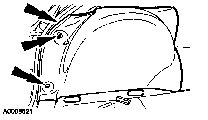 NOTE: A hidden fastener for the second row retractor is behind the quarter trim panel.
