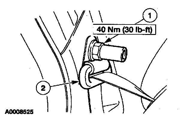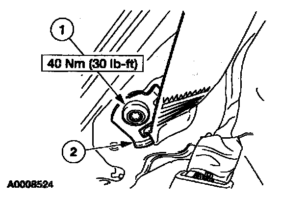 1 From behind the quarter trim panel, put a wrench on the second row safety belt guide retaining stud.