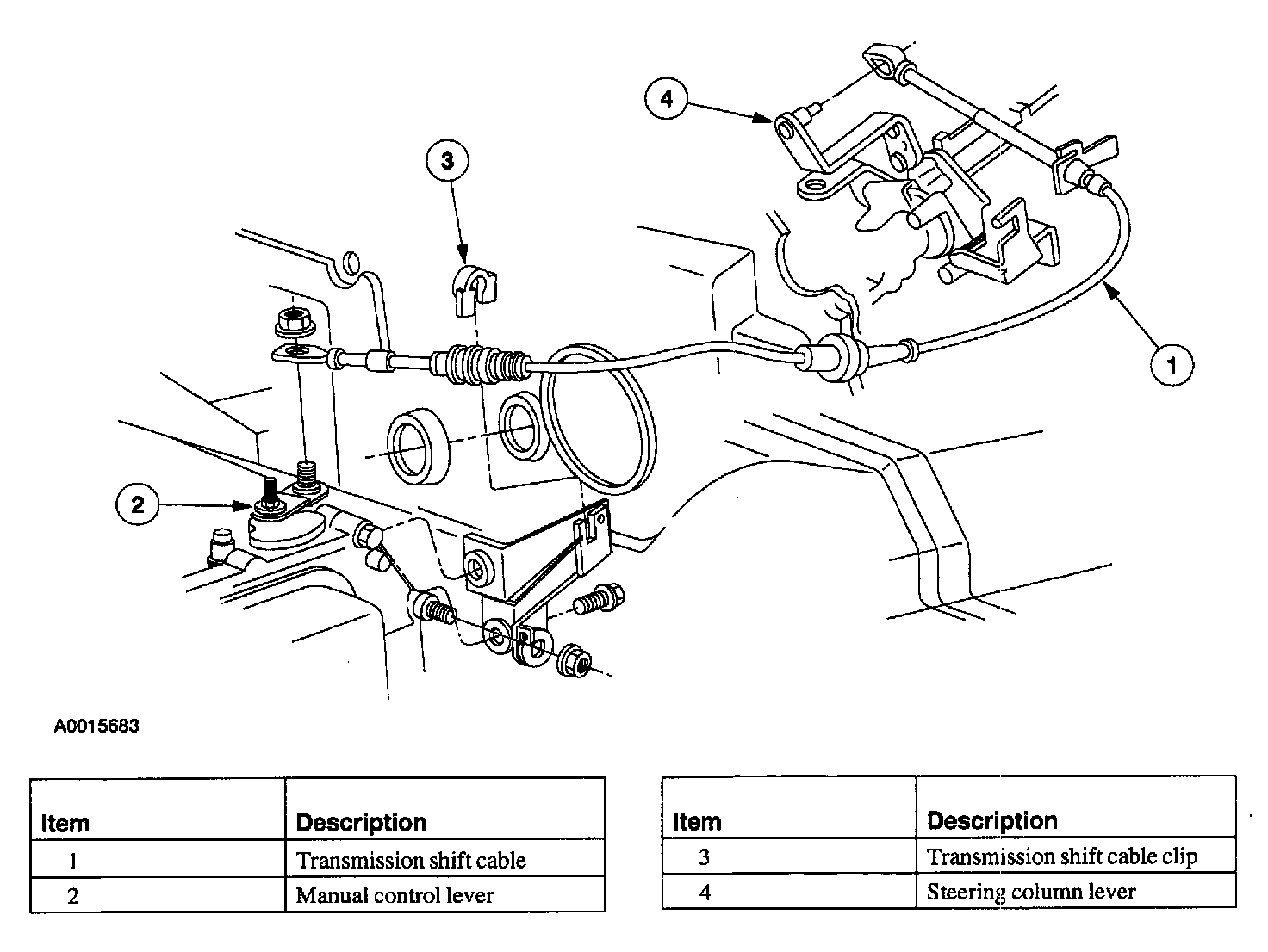 ^ a shift cable connecting the steering column to the transaxle range selector lever.