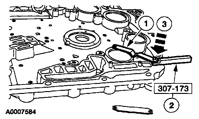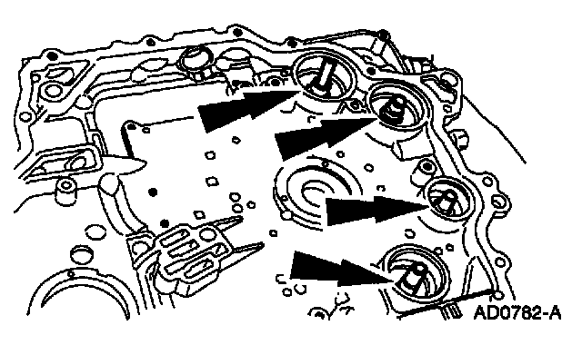 8. NOTE: The use of petroleum jelly will hold the accumulator piston shafts (7G094) in place while assembling the chain cover.