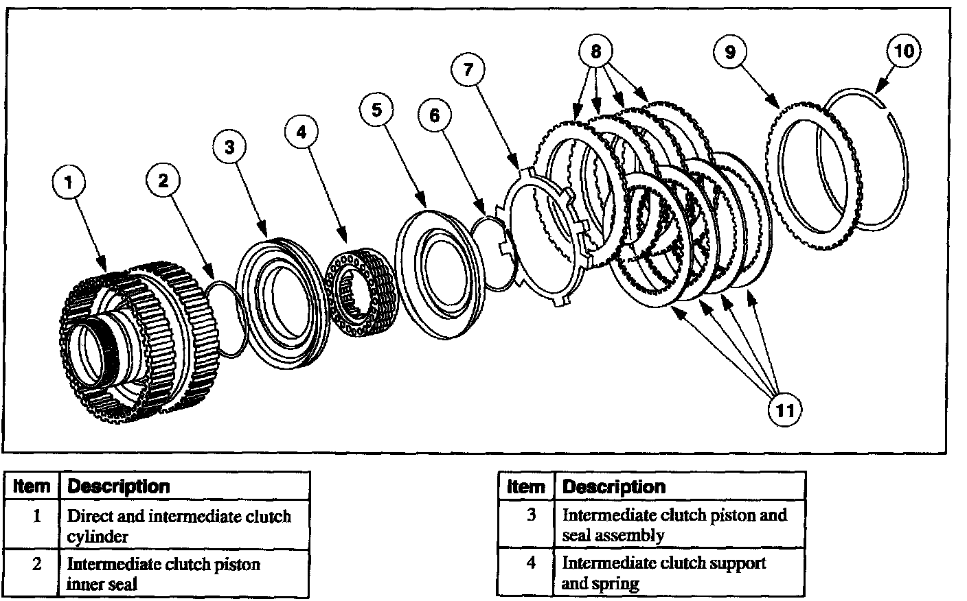 1. Clean and inspect the intermediate clutch cylinder. Install the intermediate clutch piston inner seal.