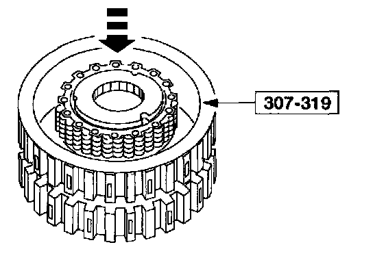 Using the special tool, compress the intermediate clutch return spring and install the snap ring.
