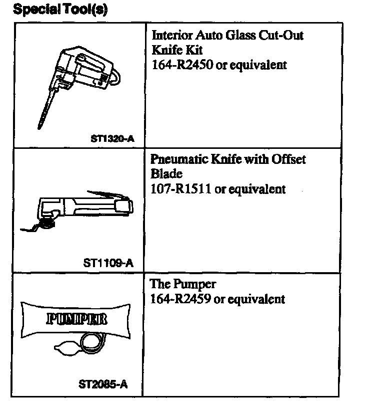Windshield: Tools and Equipment