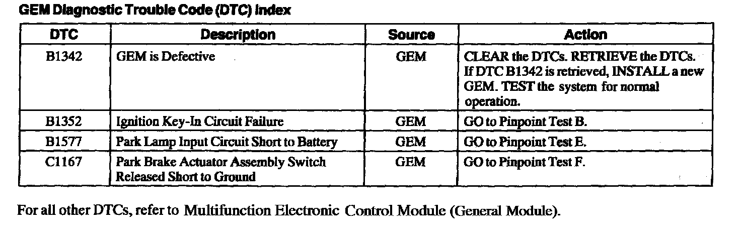 DTC Index B1342 - C1167: