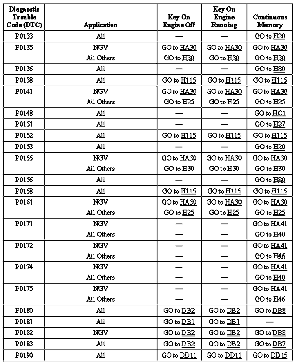 P0133 Thru P0190: