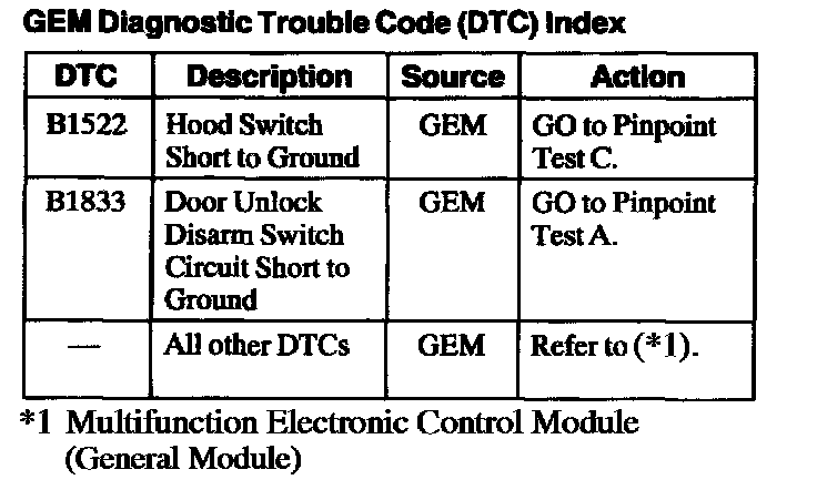 DTC Index B1522 - B1833: