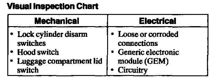 1. Verify the customer concern by operating the system.Visual Inspection Chart: