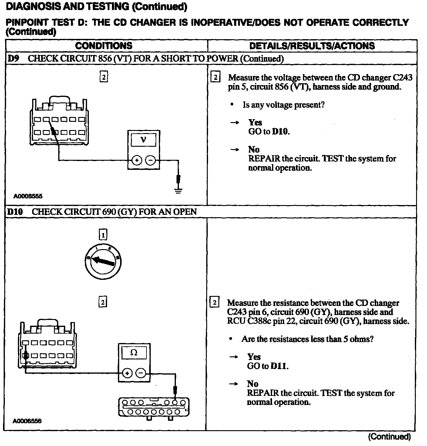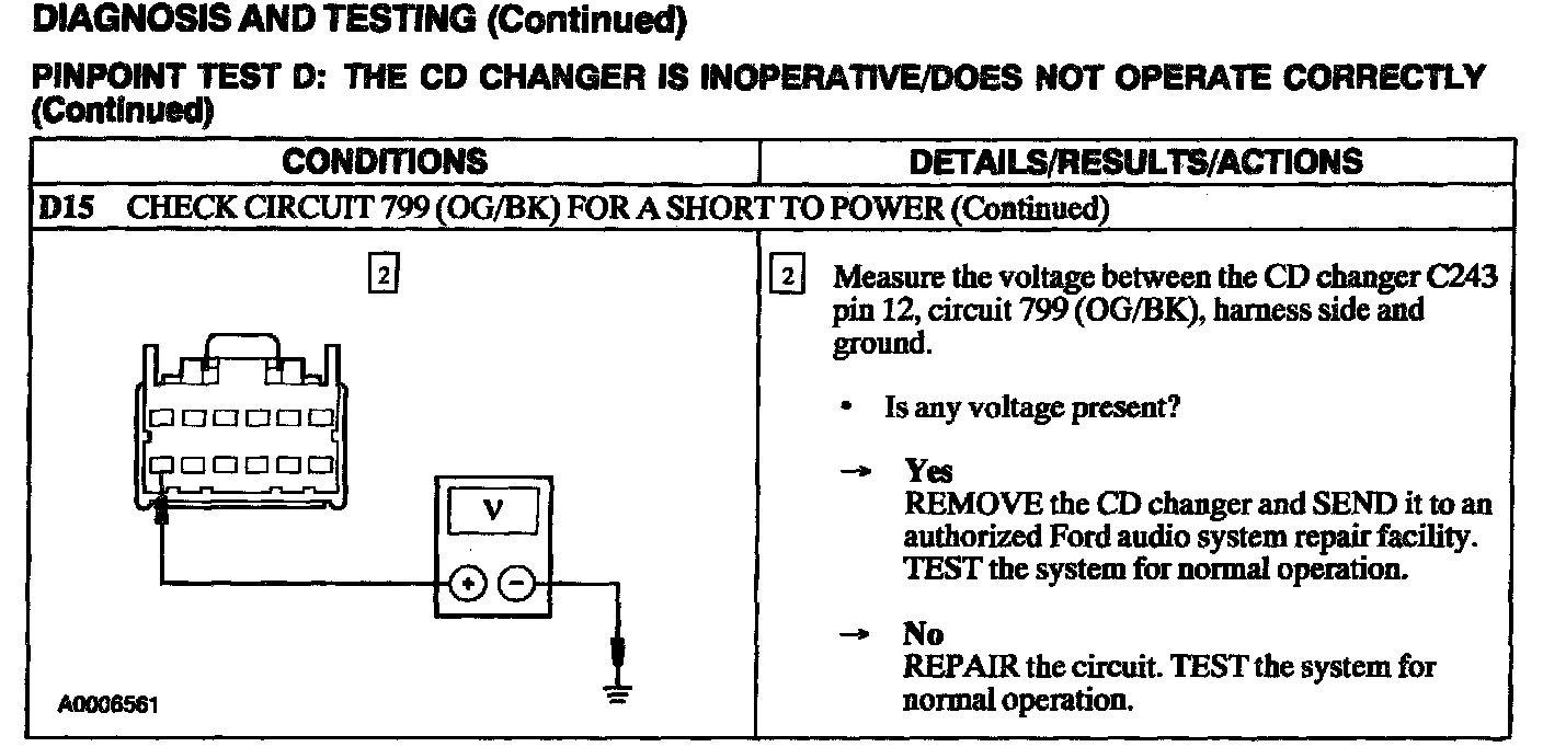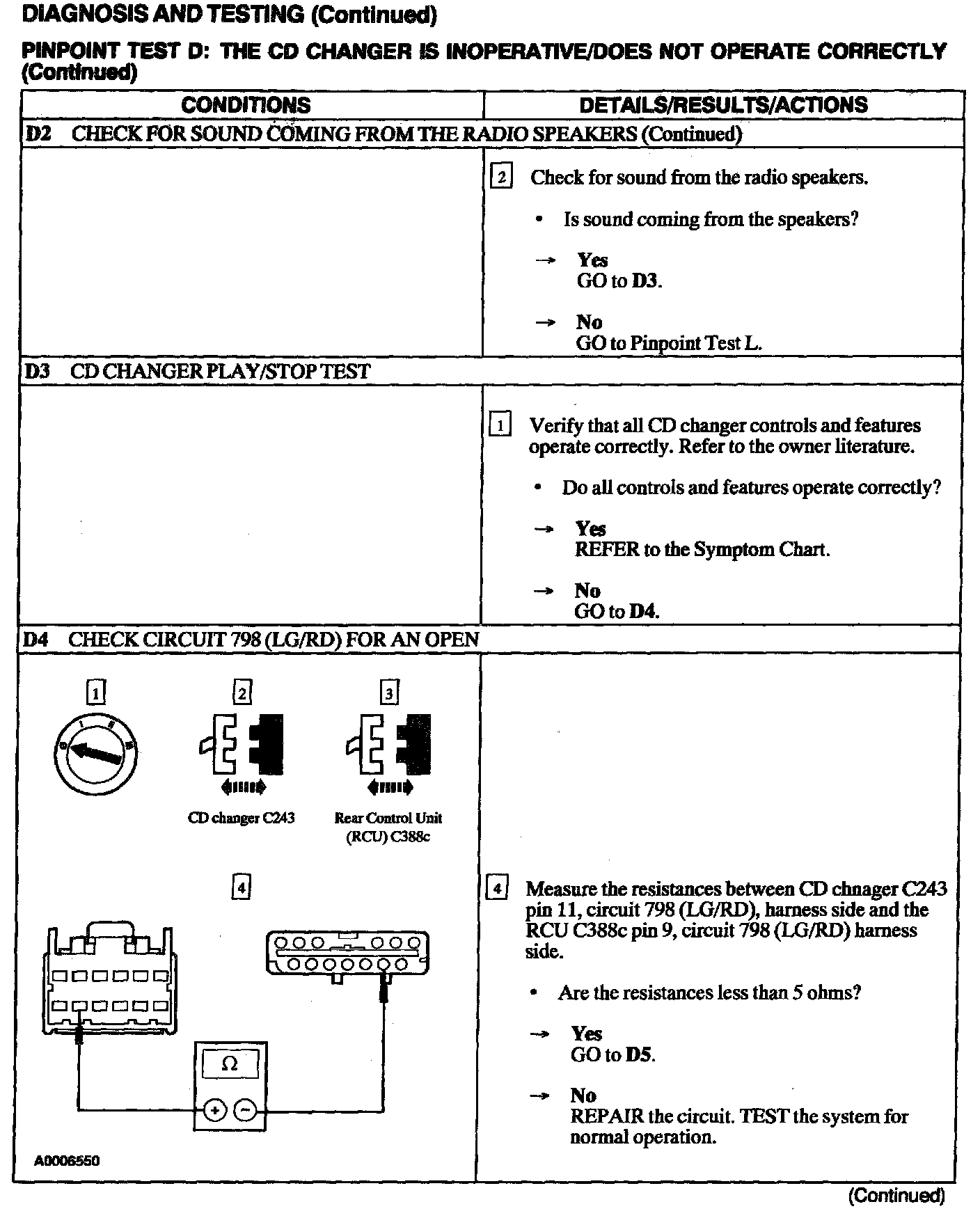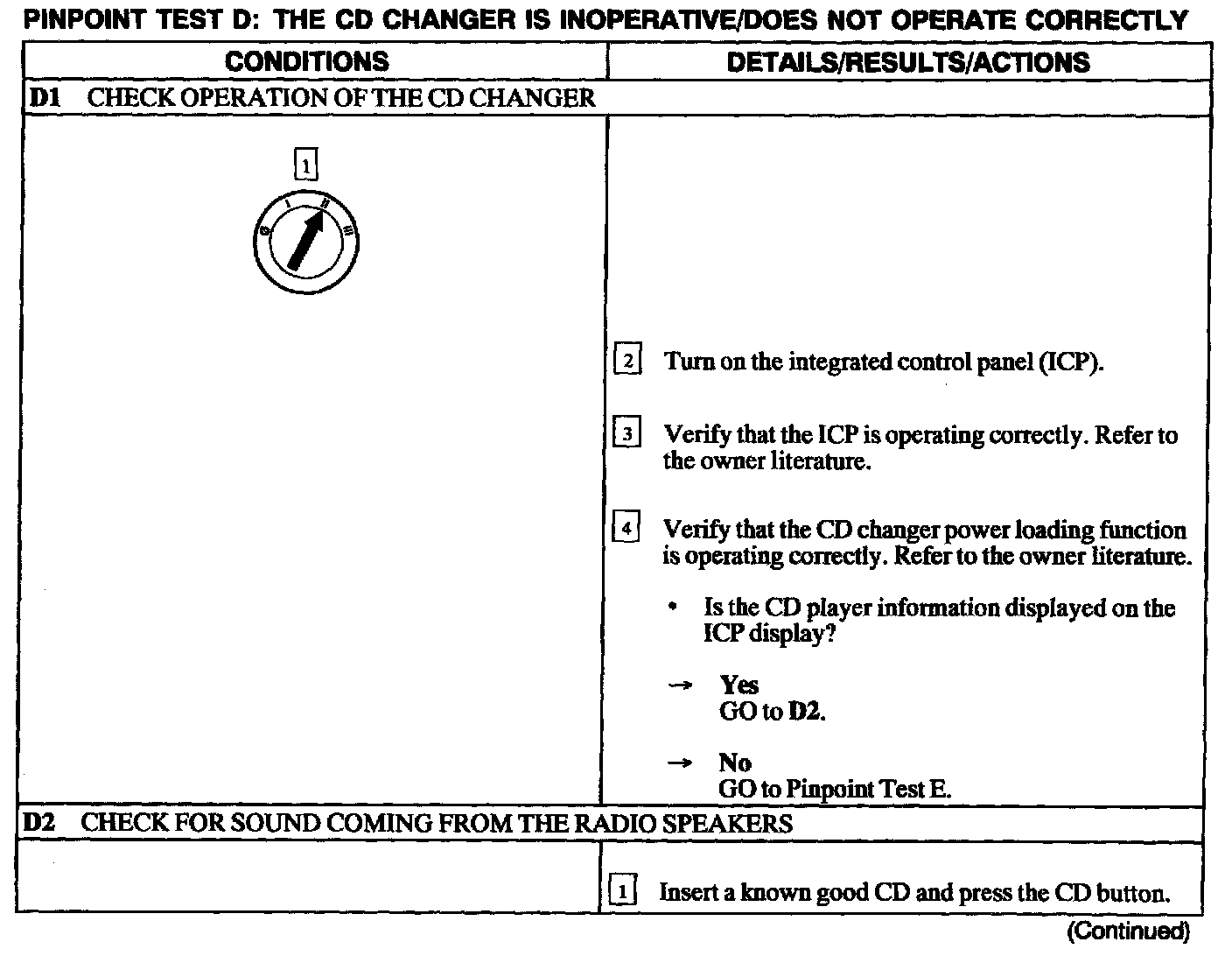 Test D: CD Changer Is Inoperative/Does Not Operate Correctly