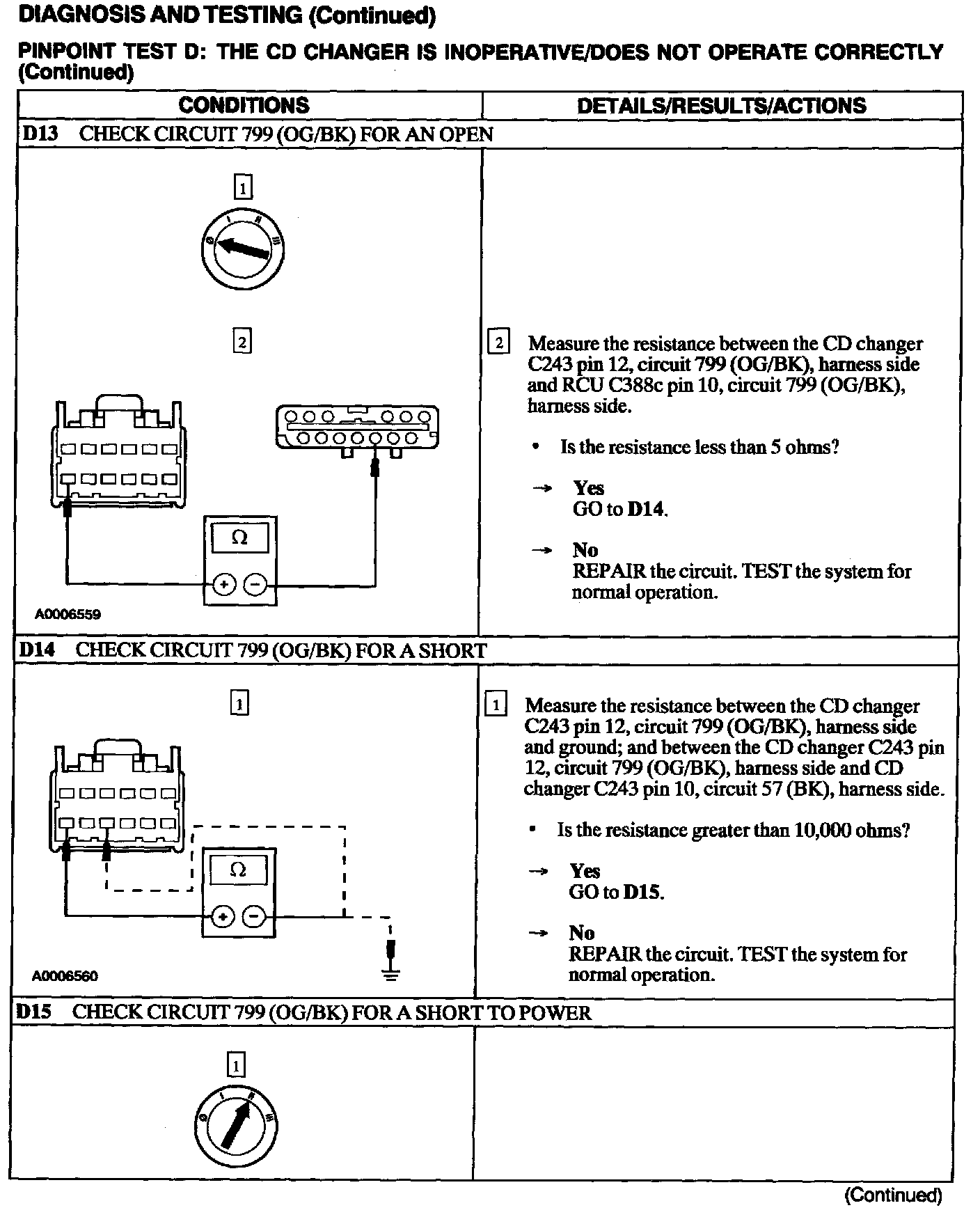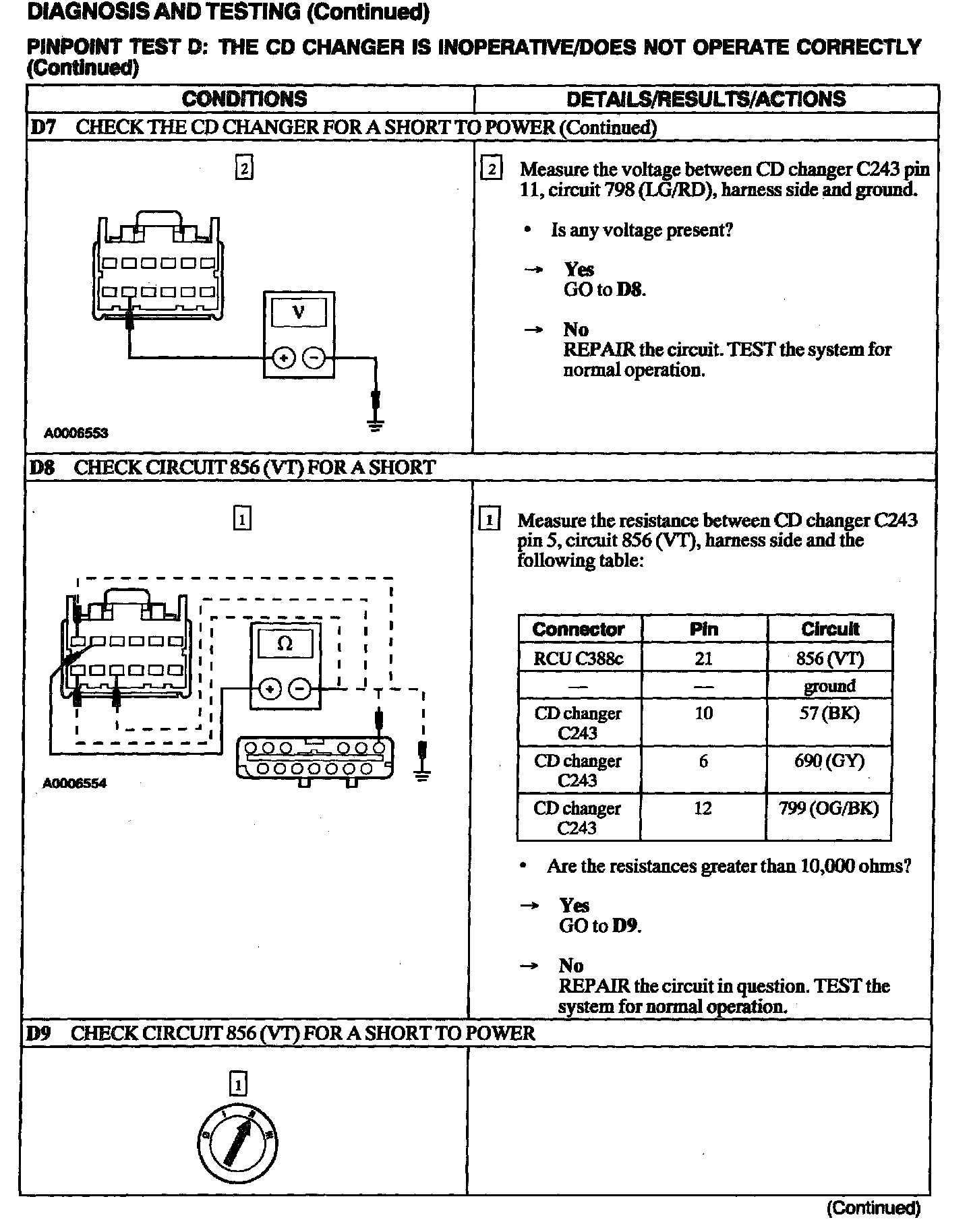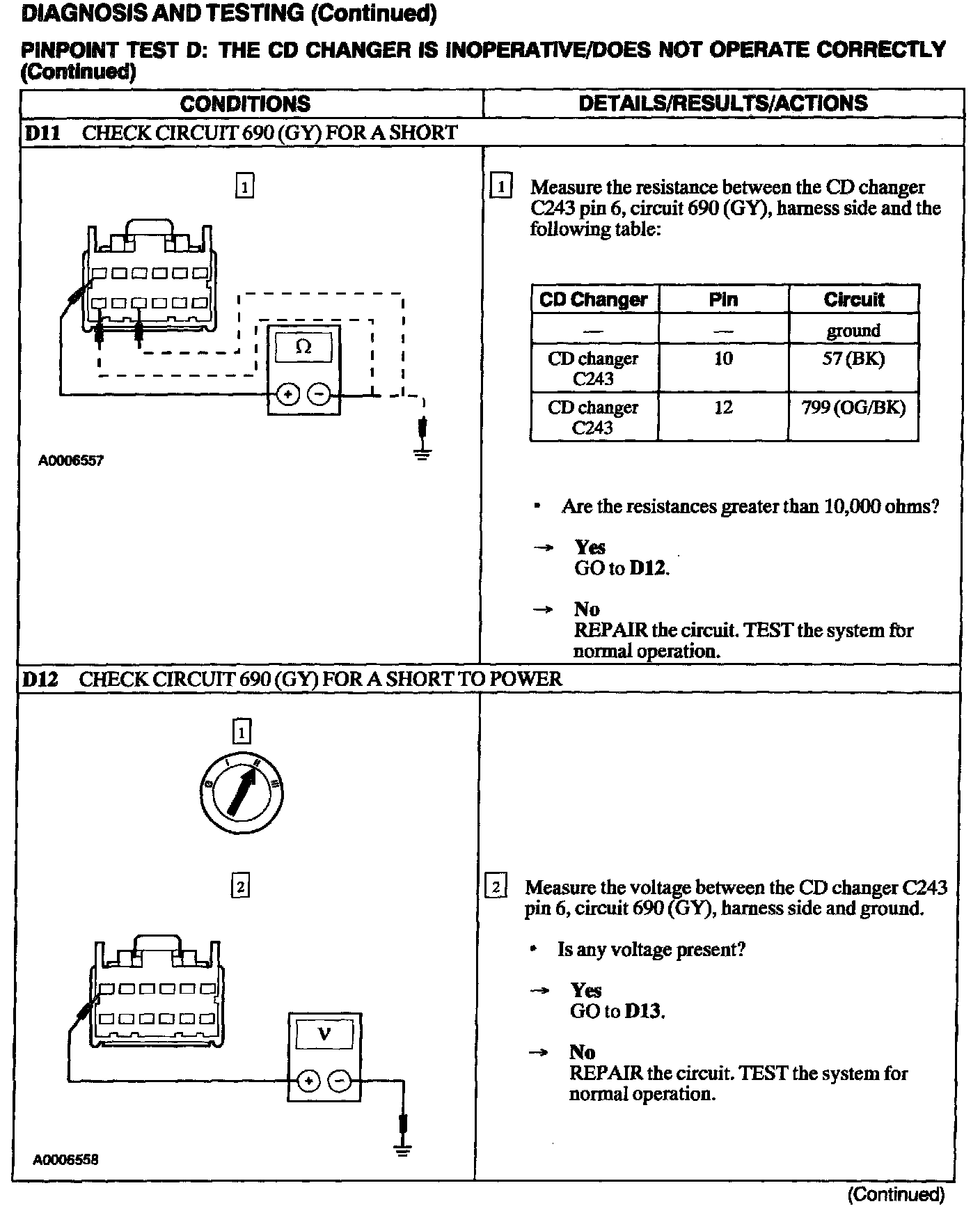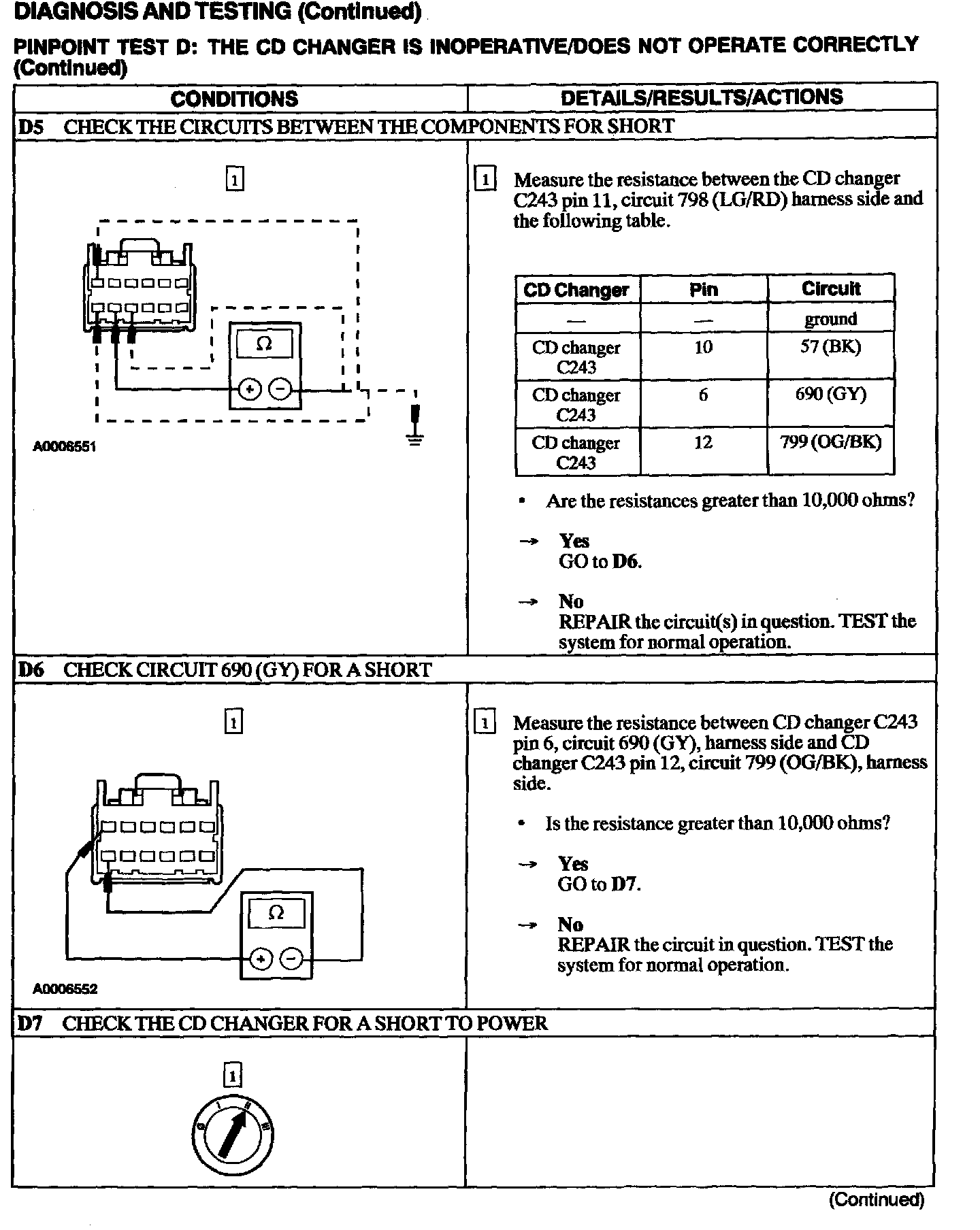 Test D: CD Changer Is Inoperative/Does Not Operate Correctly