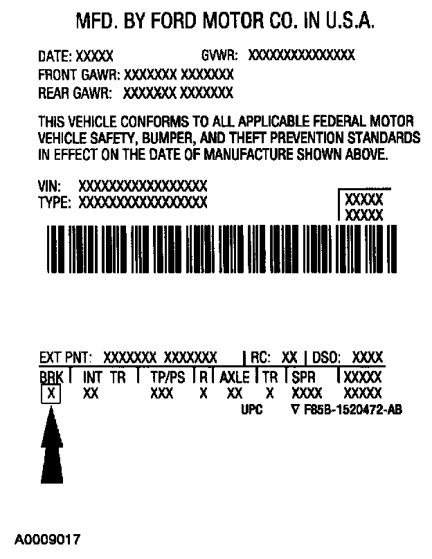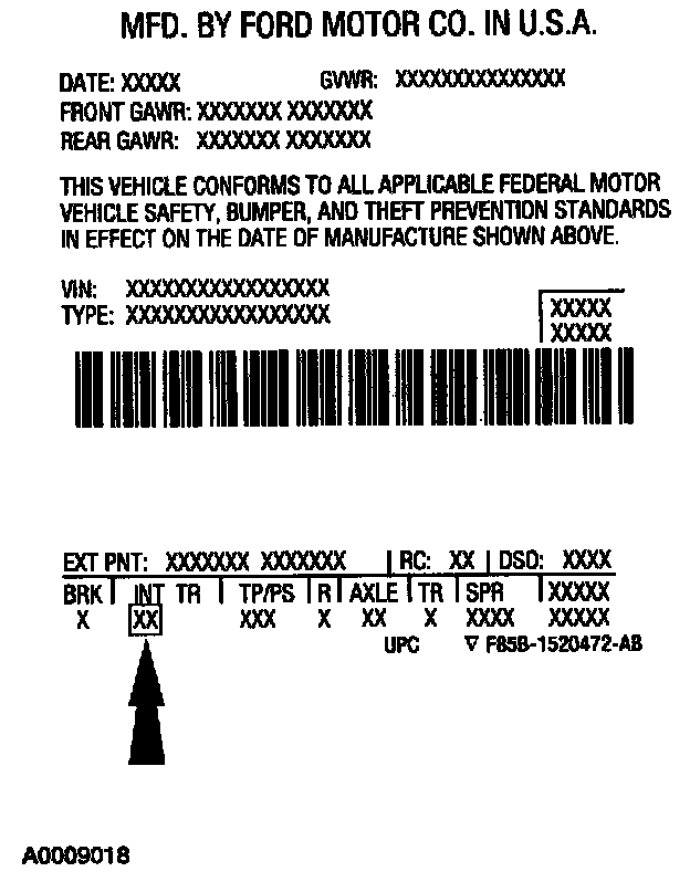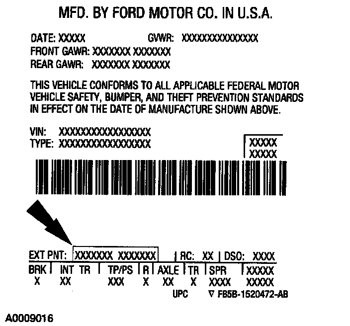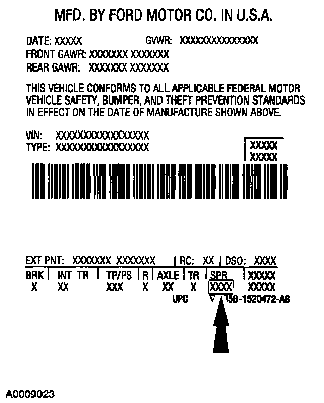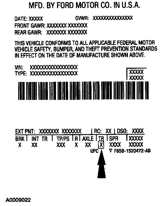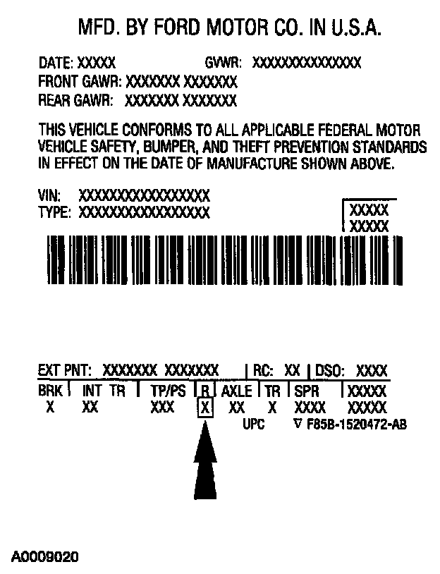 Powertrain calibration information is printed in the lower right corner of the Vehicle Certification Label. Only the base calibration information is printed. Revision levels will not appear, however, they can be found in On Line Automotive Service Information System (OASIS). For the current model year, Ford Motor Company is using three different protocols which describe powertrain base calibration. These protocols are designed to provide worldwide standardization for vehicle calibration. If the electronic calibration strategy has been used since 1998 and carried into the current model year, Protocol 1 will be used. Refer to Protocol 1. If the electronic calibration strategy has been used since 1999 and is carried into the current model year, Protocol 2 will be used. Refer to Protocol 2. For electronic calibration strategies introduced in 2000 or later model years, Protocol 3 will be used. Refer to Protocol 3.