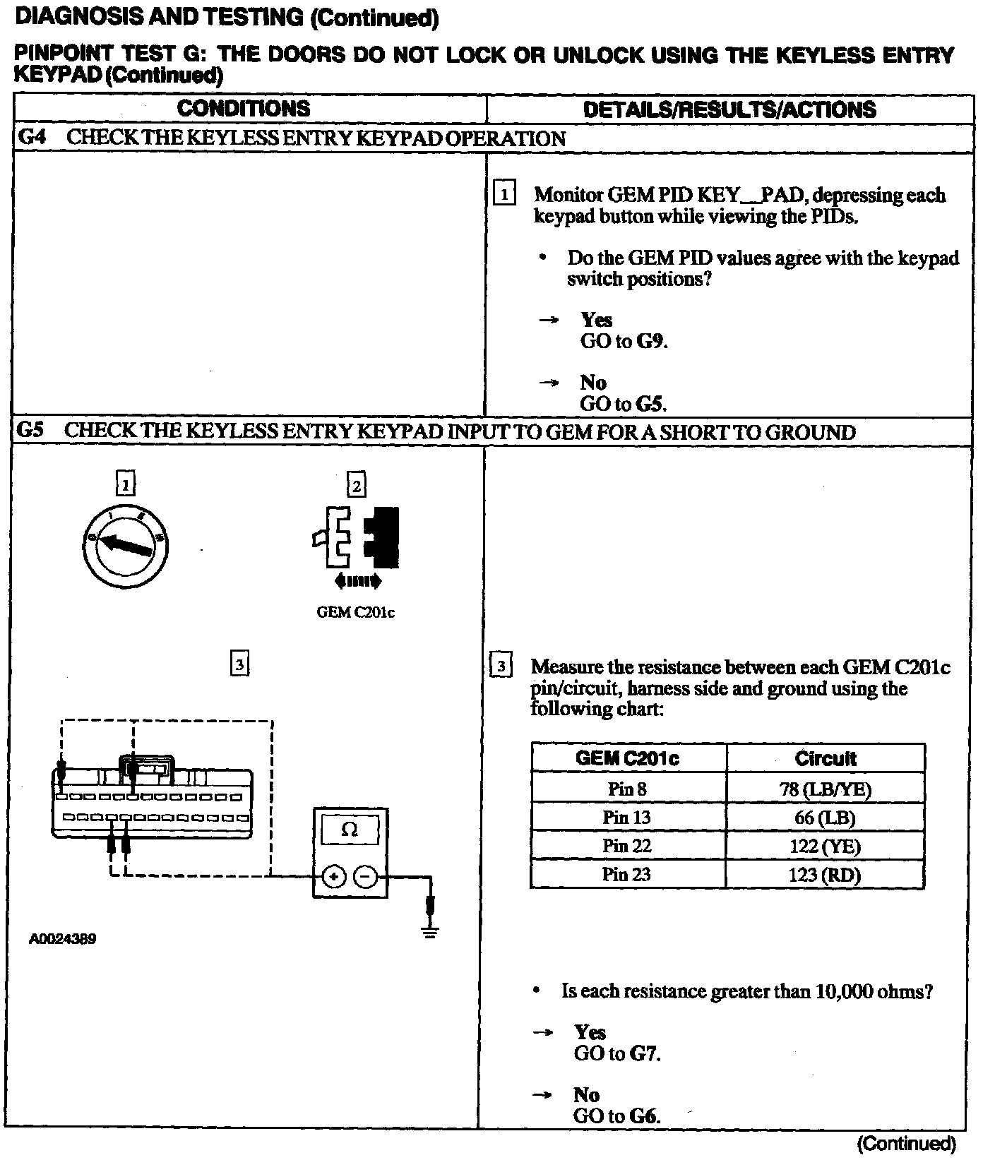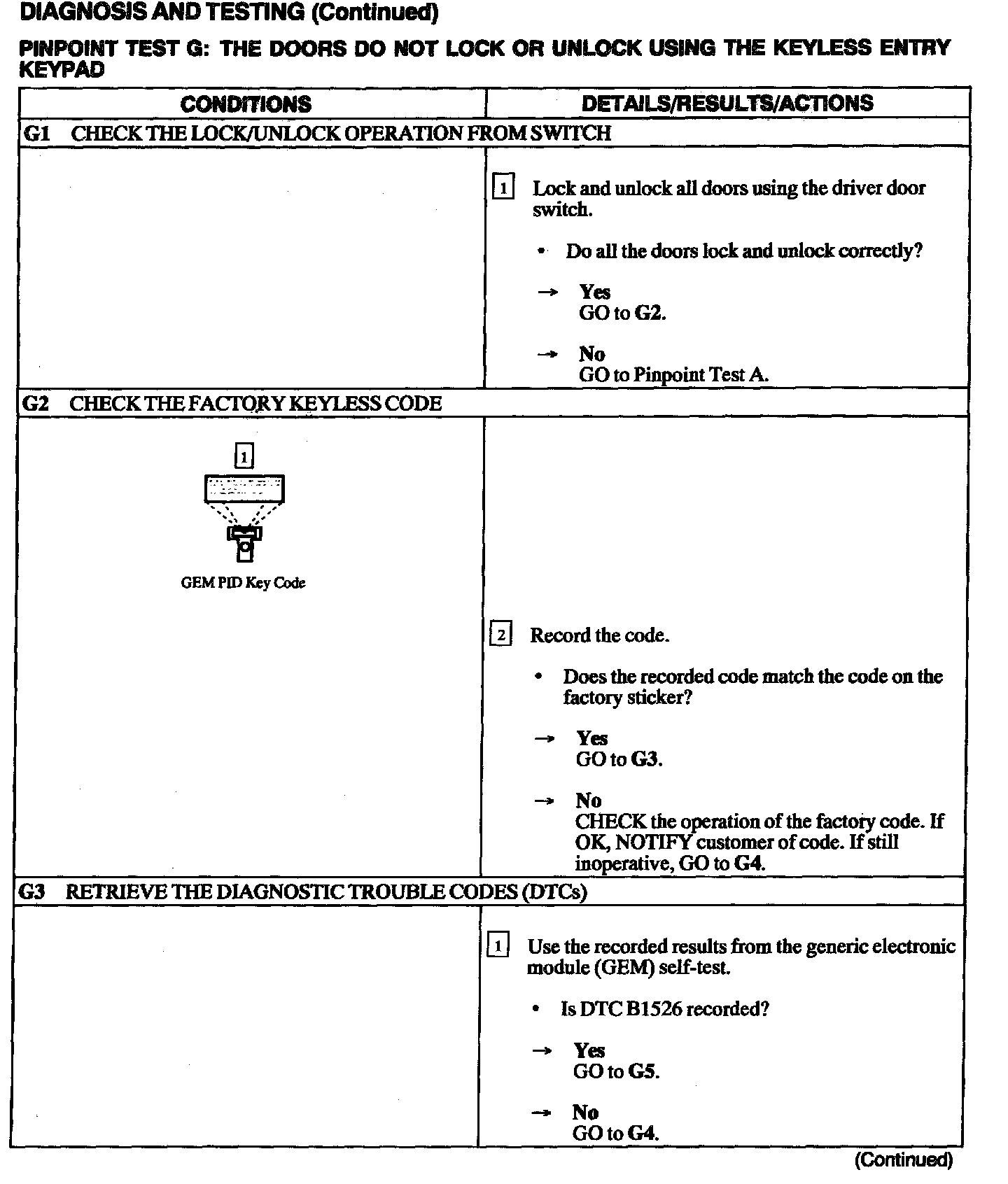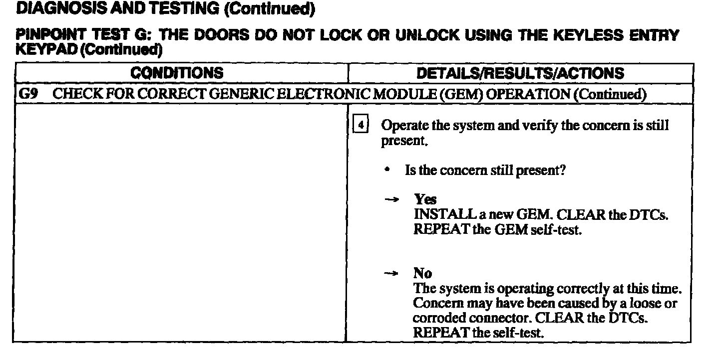 Test G: Doors Do Not Lock or Unlock Using the Keyless Entry Keypad