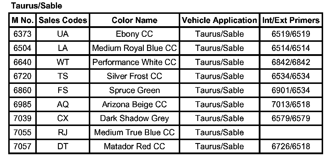 Sable V6-3.0L VIN U