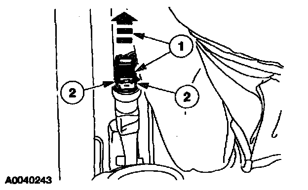 ^ VEHICLE SENSOR ORIENTATION IS CRITICAL FOR PROPER SYSTEM OPERATION. IF A VEHICLE EQUIPPED WITH AN AIR BAG SUPPLEMENTAL RESTRAINT SYSTEM (SRS) IS INVOLVED IN A COLLISION, INSPECT THE SENSOR MOUNTING BRACKET AND WIRING PIGTAIL FOR DEFORMATION. REPLACE AND PROPERLY POSITION THE SENSOR OR ANY OTHER DAMAGED SUPPLEMENTAL RESTRAINT SYSTEM (SRS) COMPONENTS WHETHER OR NOT THE AIR BAG IS DEPLOYED.