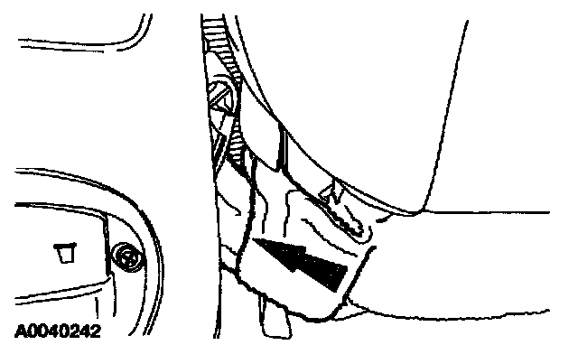 1 Position the lower steering column opening cover with reinforcement to the instrument panel and push in at the top seating the retaining clips.