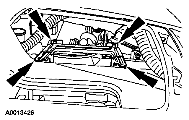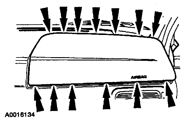 15. Through the glove box opening, install the passenger air bag module retaining bolts.