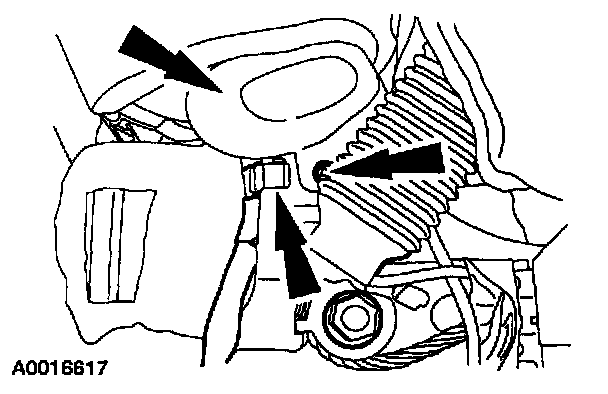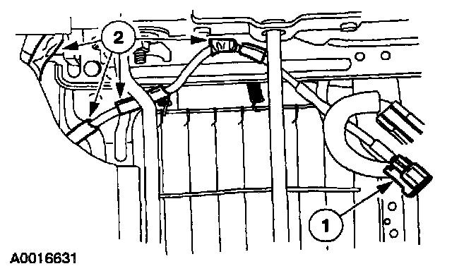 NOTE: If the pin-type retainers are damaged, install new retainers. This will keep the wiring harness routed correctly.
