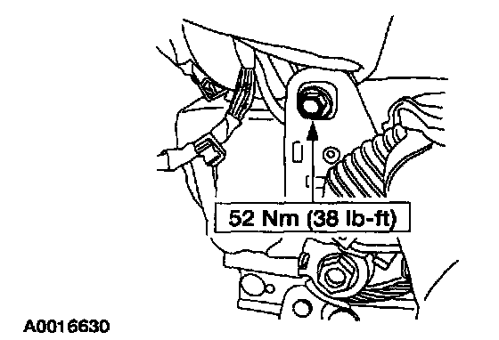 ^ Align the safety belt buckle and pretensioner mounting bracket slot so that the seat track bracket anti-rotation tab goes through it.