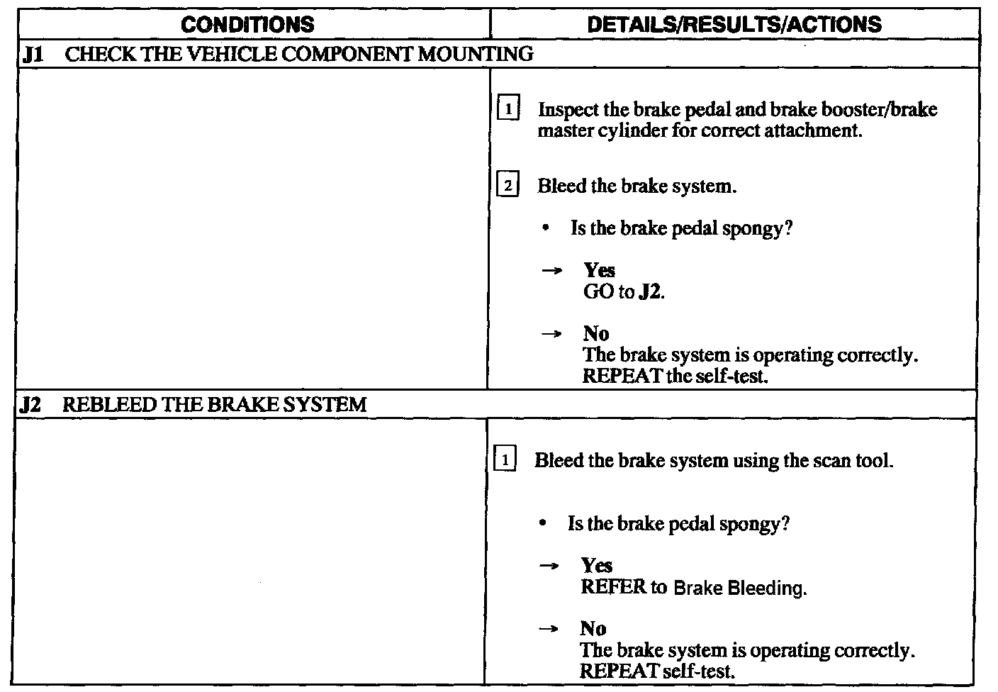 PINPOINT TEST J: SPONGY BRAKE PEDAL WITH NO WARNING INDICATOR
