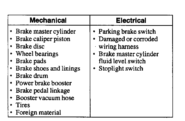 A change in brake pedal feel is usually the first indicator of a brake system concern. The brake warning indicator in the instrument cluster and the brake fluid level in the brake master cylinder reservoir are also indicators of system concerns.