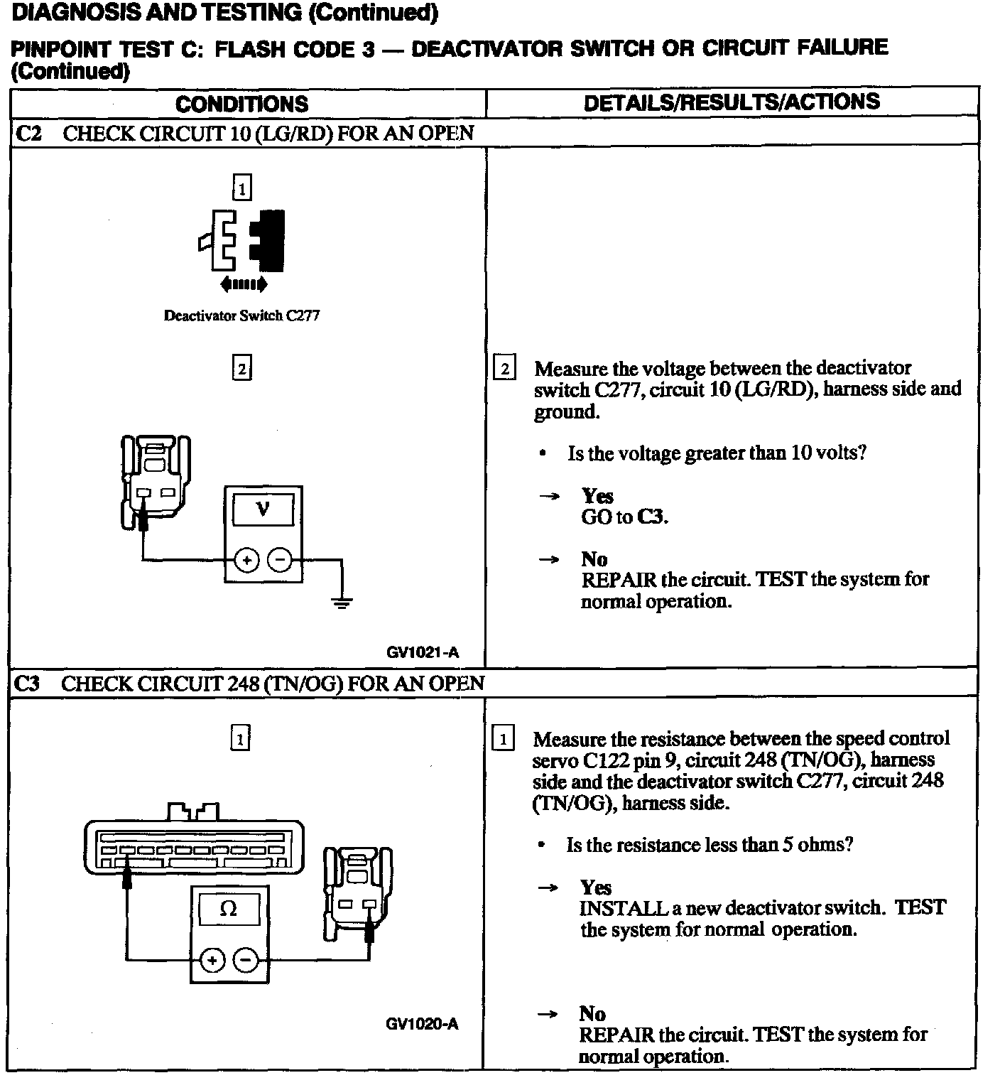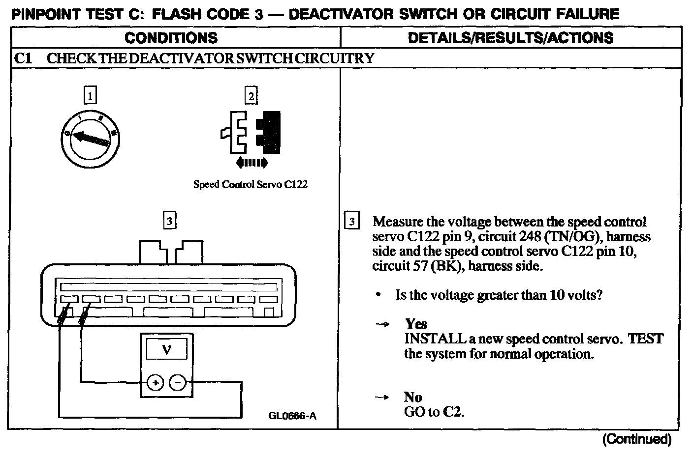 Test C: Flash Code 3 - Deactivator Switch Or Circuit Failure