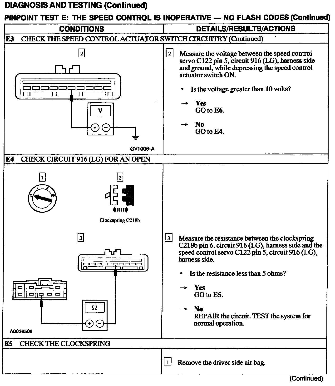 Test E: Speed Control Is Inoperative - No Flash Codes