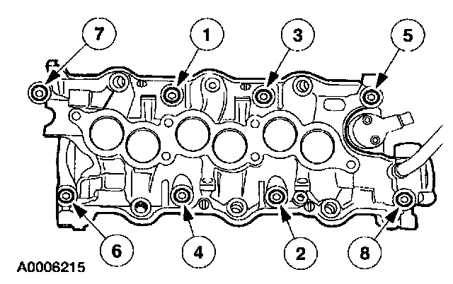 4. Install the intake manifold. Tighten the bolts in the sequence shown in two stages.