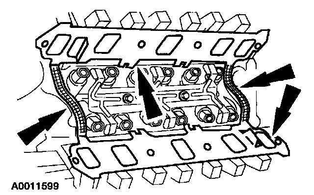2. Apply a drop of silicone gasket and sealant at the four cylinder block-to-cylinder head seams.